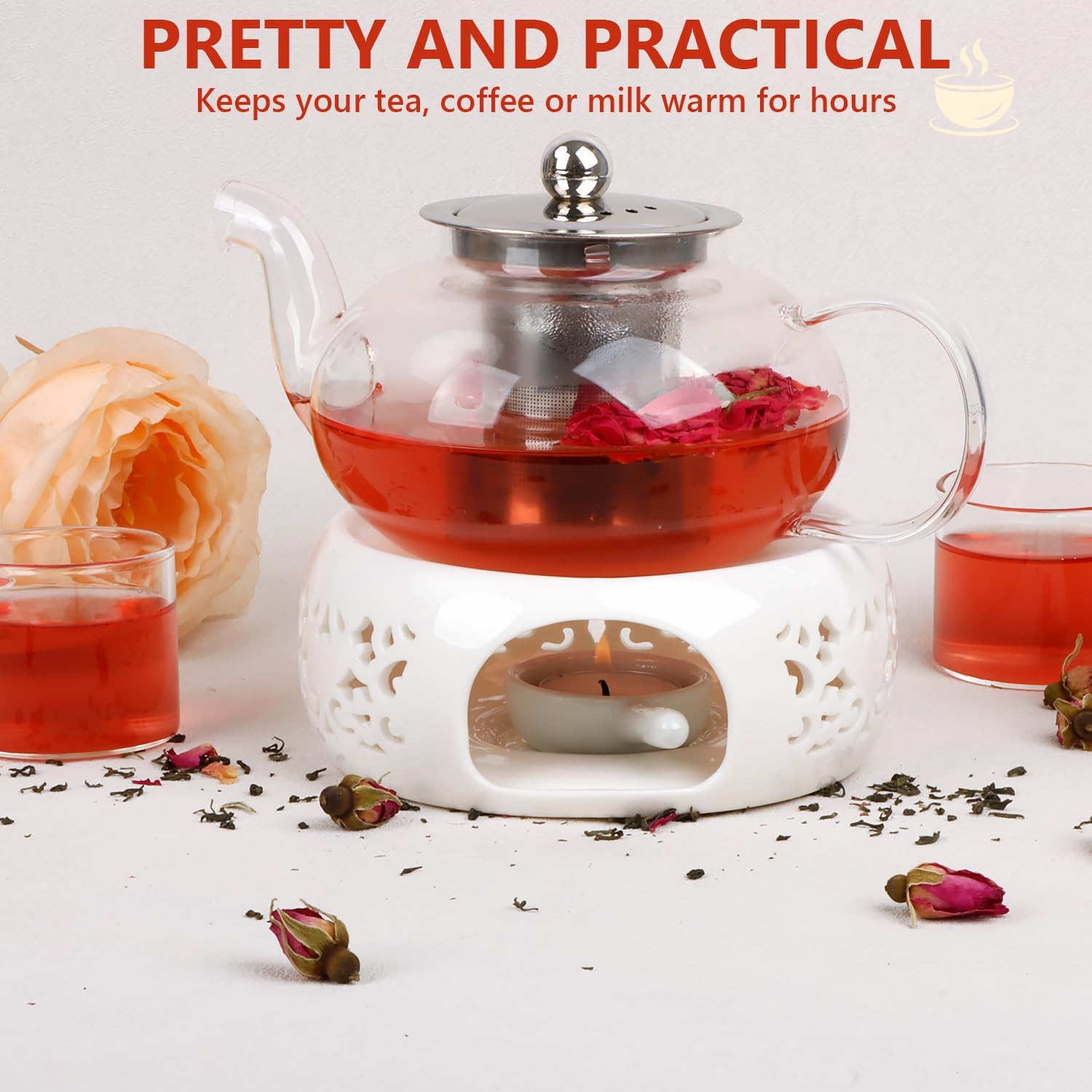 - [ Elegant Design] The tea warmer is made of high-quality exquisite white porcelain, durable and strong load-bearing capacity. Beautiful craftsmanship, hollow carving, candles give off a soft glow, creating a relaxing and romantic atmosphere.