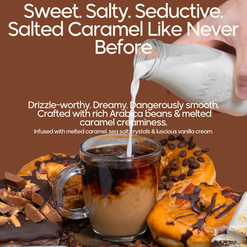 - DECADENT SALTED CARAMEL FLAVOR: Smooth medium roast with notes of melted caramel, sea salt, and cinnamon. Enjoy a sweet, creamy cup that tastes like your favorite Caramel Macchiato—with no sugar or artificial aftertaste.