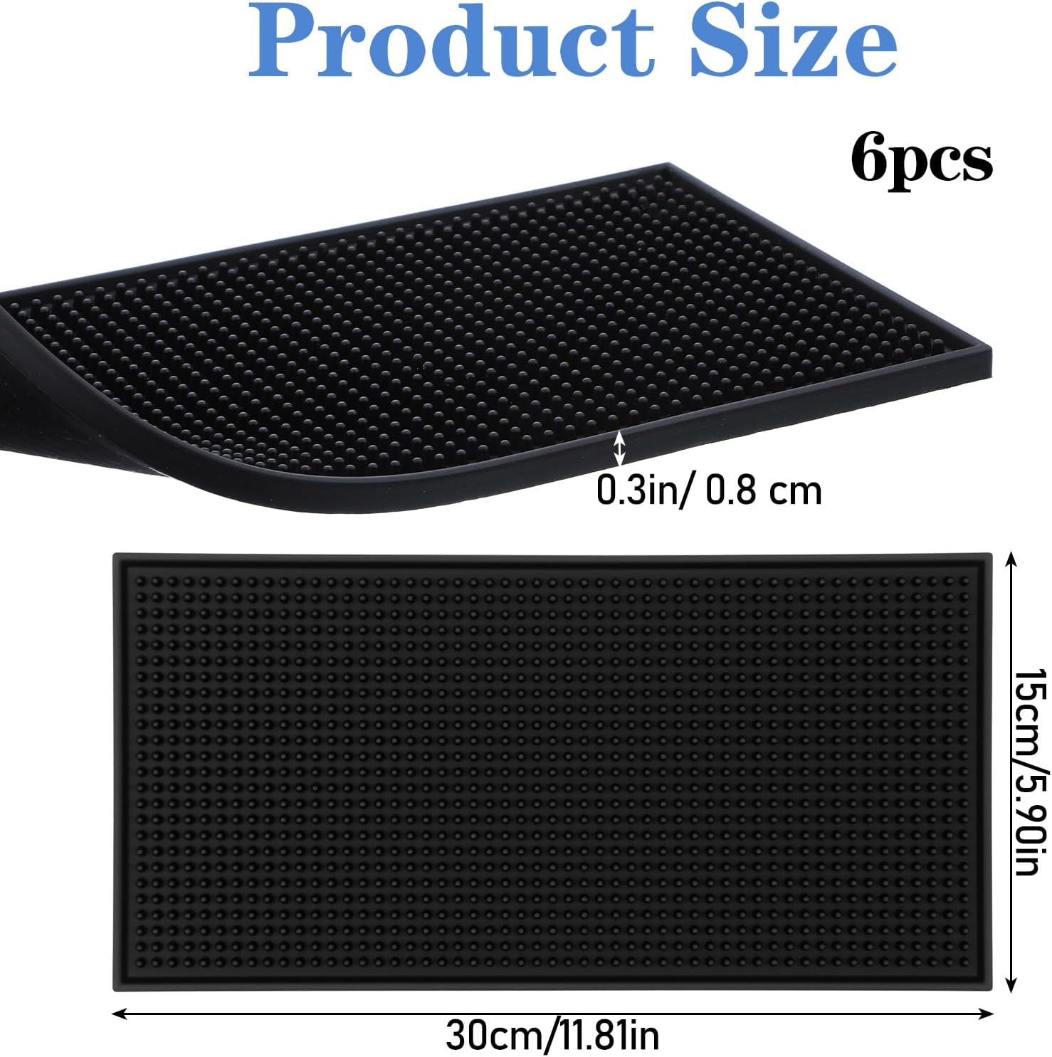 - What You Get: 6 high-quality black bar mats (6" x 12" each), providing ample coverage for multiple workstations. Whether you're a professional bartender or a home enthusiast, these bar spill mats are a must-have for a tidy and efficient workspace.