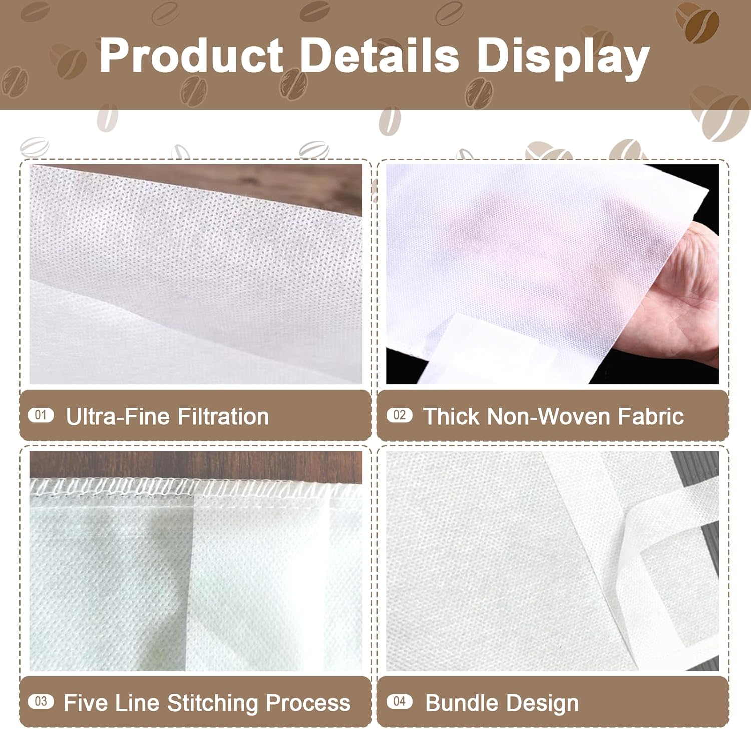 - Heavy-Duty & Leak-Proof: Made from thick non-woven material with reinforced seams, our cold brew filter bags resist tearing and leakage while preserving pure coffee flavor.