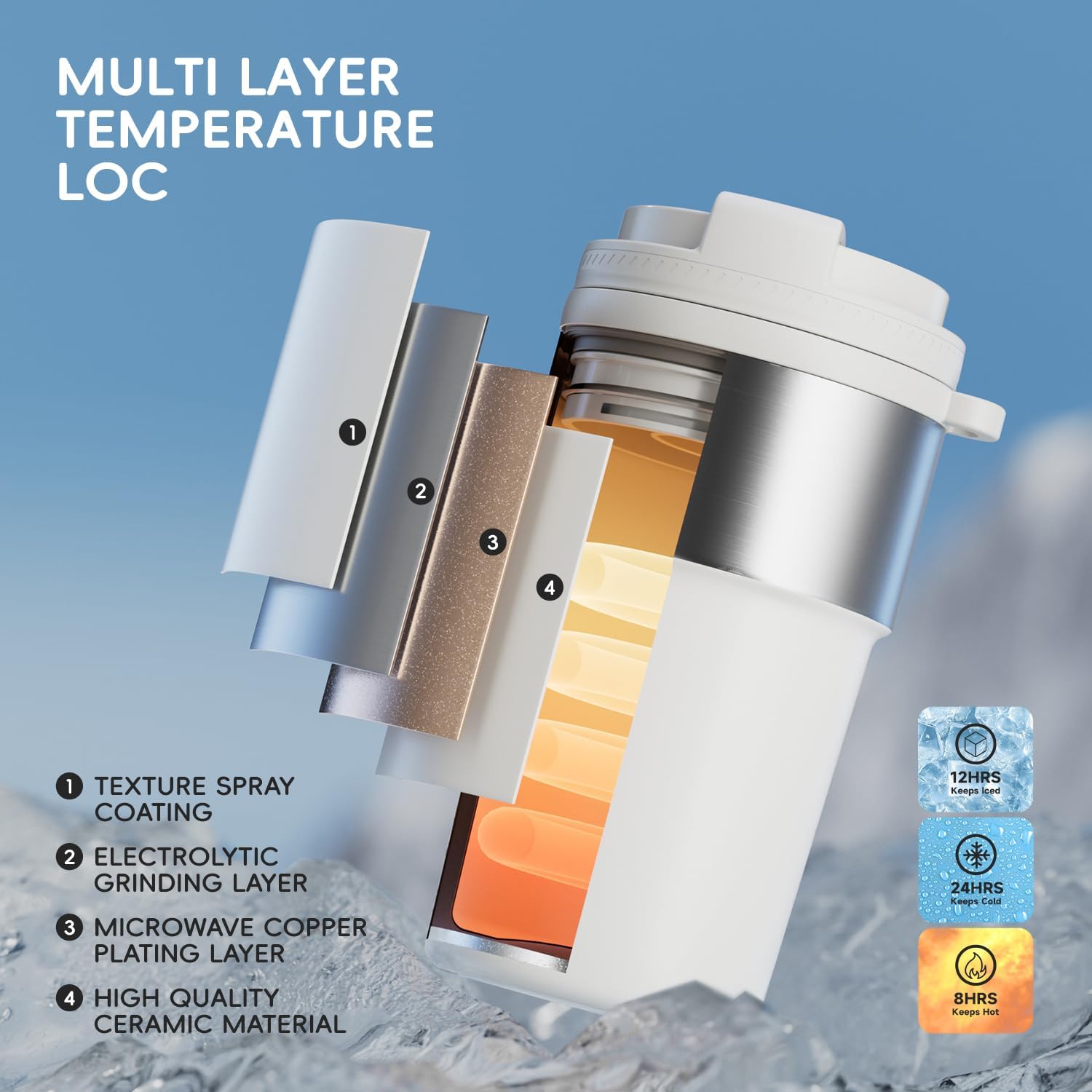 - Durable & Easy-Clean Construction for Daily Use Crafted from food-grade stainless steel with a BPA-free lid, this coffee tumbler is built to last. The wide opening simplifies cleaning, while the ceramic interior prevents residue buildup—ideal as a water bottle for gym, work, or home. Dishwasher-safe for hassle-free maintenance.