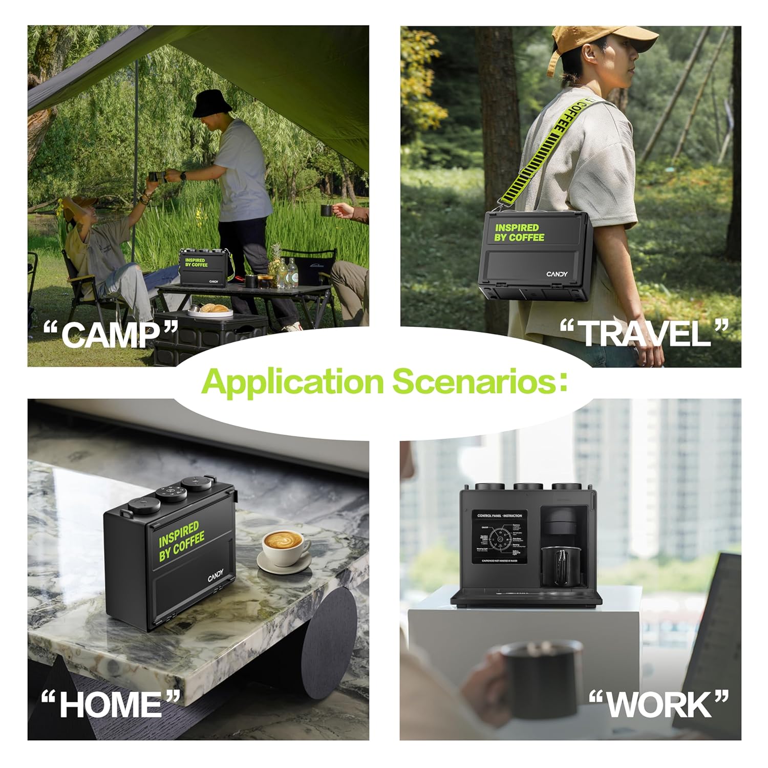 Candy™ Portable Espresso Coffee Maker with Strap for Travel, 3 in 1 One-Touch Operation, Rechargeable Up to 60 Cups(Cold), for Ground, Ideal for Camping, RV & Outdoor Use, Fast Heating in Plug-in Mode