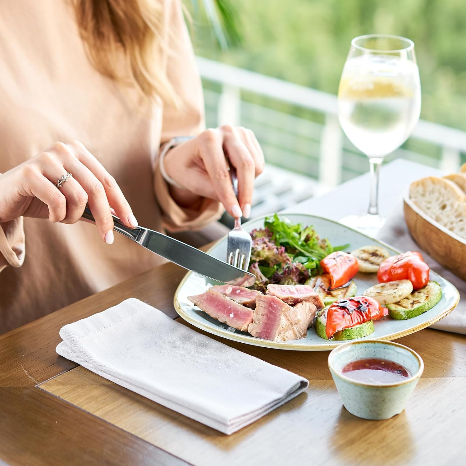 - Clear Sizes for Better Fit – Knife 9.1 in / 2.47 oz, dinner fork 8.2 in / 1.41 oz, salad fork 5.8 in / 0.71 oz, dinner spoon 8.1 in / 1.76 oz, teaspoon 5.8 in / 1.06 oz. Neatly packaged for tidy storage or gifting.