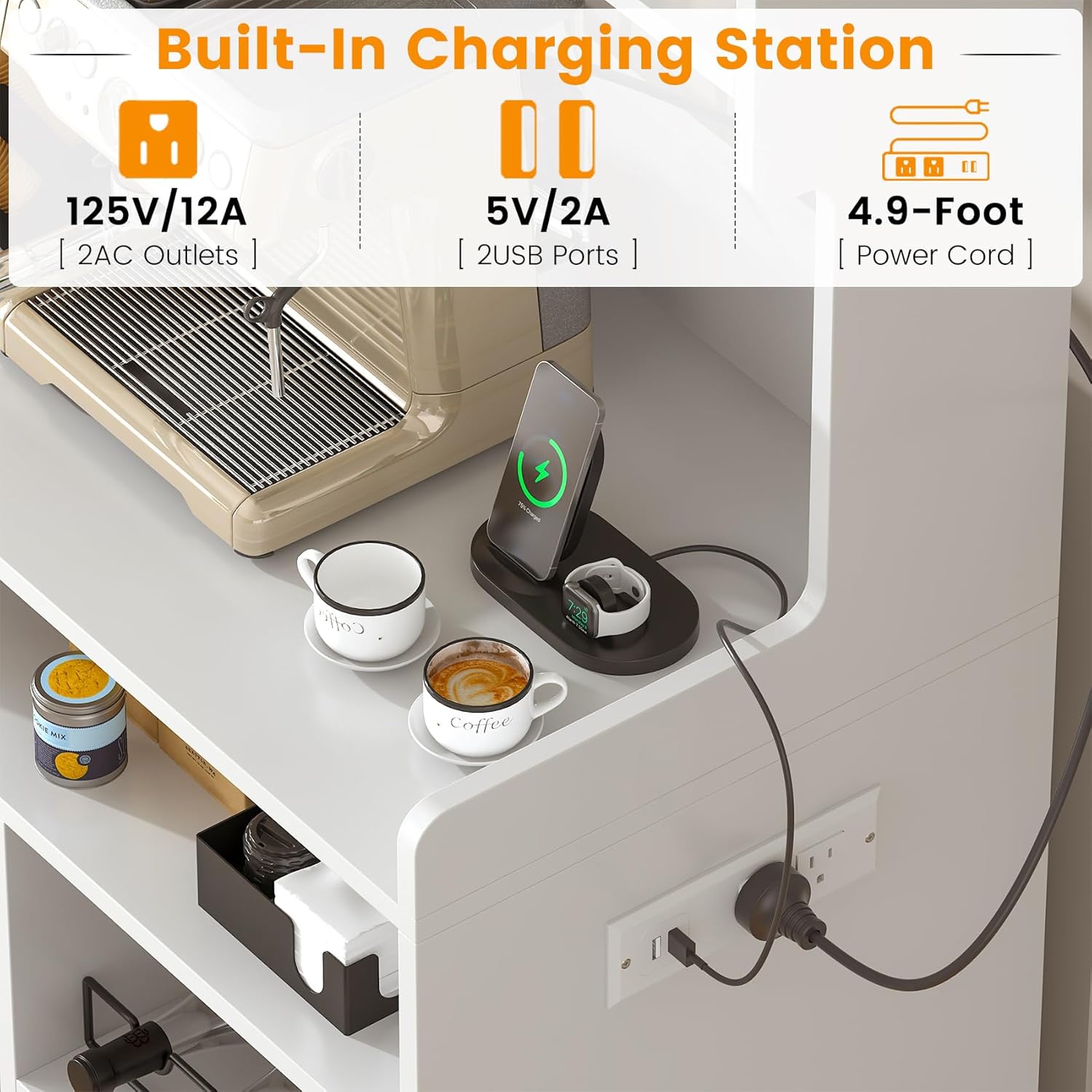 - 【Multifunctional Cabinet】 If you are looking for a shelf to hold your microwave oven, coffee pot, blender, spices and other kitchen items, this storage cabinet with power outlet is a good choice. Perfect for kitchen, office, living room, dining room, study as coffee bar cabinet, bookcase, buffet cabinet.