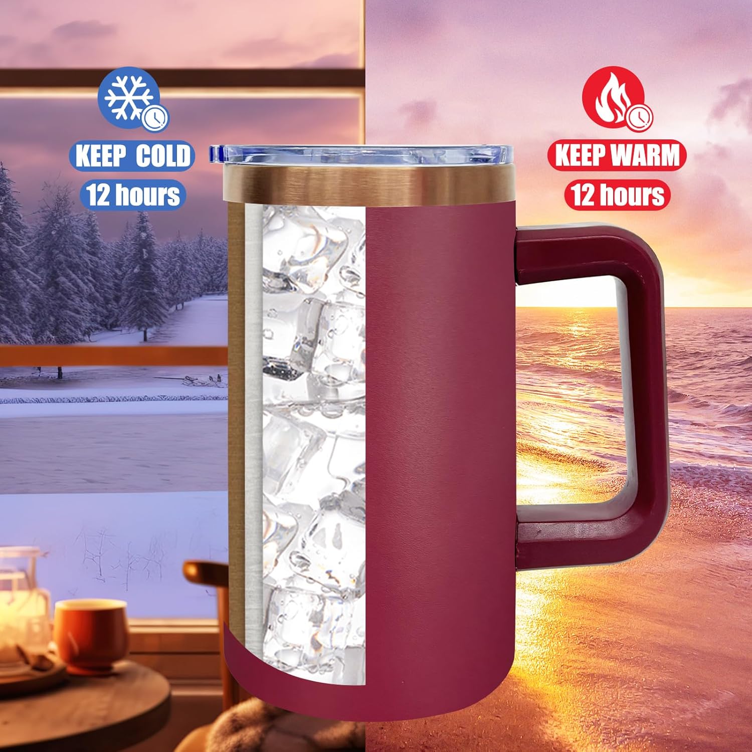 - Double Wall Vacuum Insulated Tumbler: Our stainless steel tumbler mug uses double layer vacuum insulation technology to ensure the drinks in the cup keep cold or warm for a long time that extends your drinking time; It can keep water warm for 12 hours and cold for 12 hours, suitable for water, coffee, milk, cocoa, juice or more