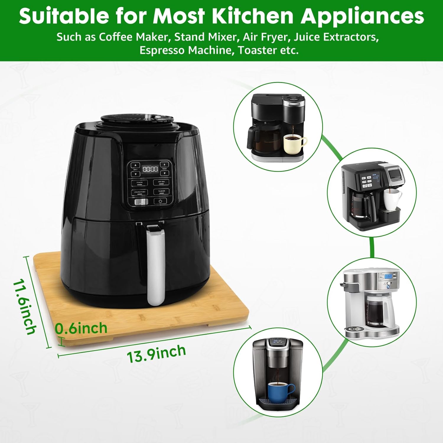 - 【Multi-functional Sliding Tray】Slider size 13.9 "W x 11.6 "L x 0.6 "D, suitable for Keurig K-Mini, Ninja,small coffee makers, espresso machines, air fryers, toasters and stand mixers.
