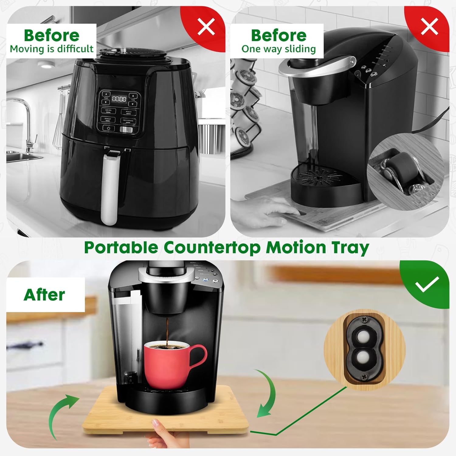 - 【360° Countertop Mobility】The appliance slider is equipped with 360° rollers for all-around mobility, making it easy to move various kitchen appliances.