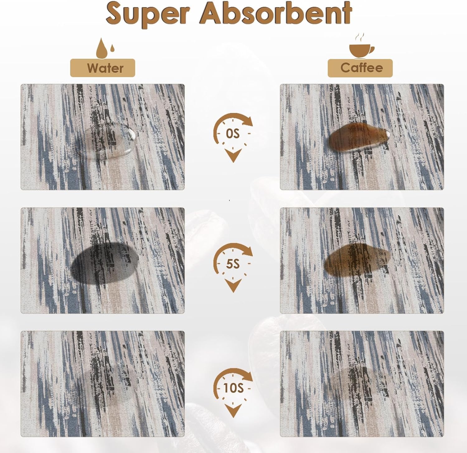 - [Super Absorbent] The coffee mats is reliable to absorb water quickly, no matter splashing coffee, or scattered water droplets, all gone real quick, the high density design makes air dry in seconds, and always keeps the table clean and tidy. It is one of practical and trustworthy coffee bar accessories.