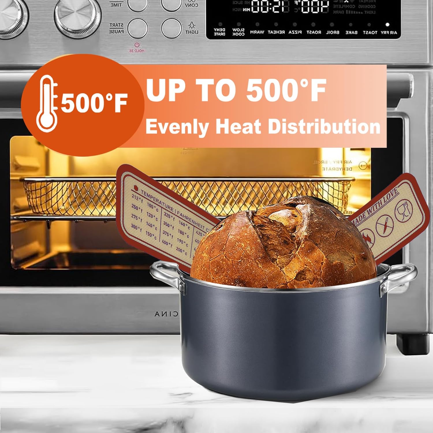 - Bread Slings Fit Most 7 qt Dutch Ovens: This 2-pack set includes two 10-inch round silicone baking mats, perfectly sized for Dutch ovens approximately 7 quarts. No more struggling to find the right sourdough mat—this set covers all your baking needs. Made from 0.7 mm-thick food-grade silicone, it’s flexible, non-stick, and won’t crack with repeated use. (Tip: Fits may vary, please measure your Dutch oven before buying.)