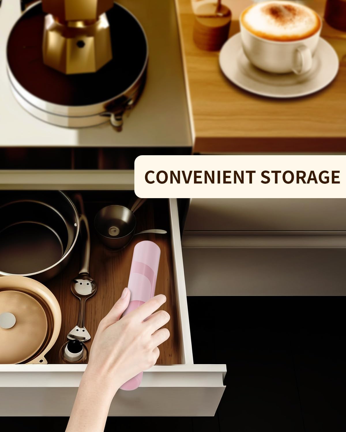 - EASY TO STORE AND CARRY: This electric hand frother features a storage tube to protect against dust and keep the whisks clean. Its lightweight and portable design allows you to easily carry it in your bag for use in hotels, offices or outdoor settings