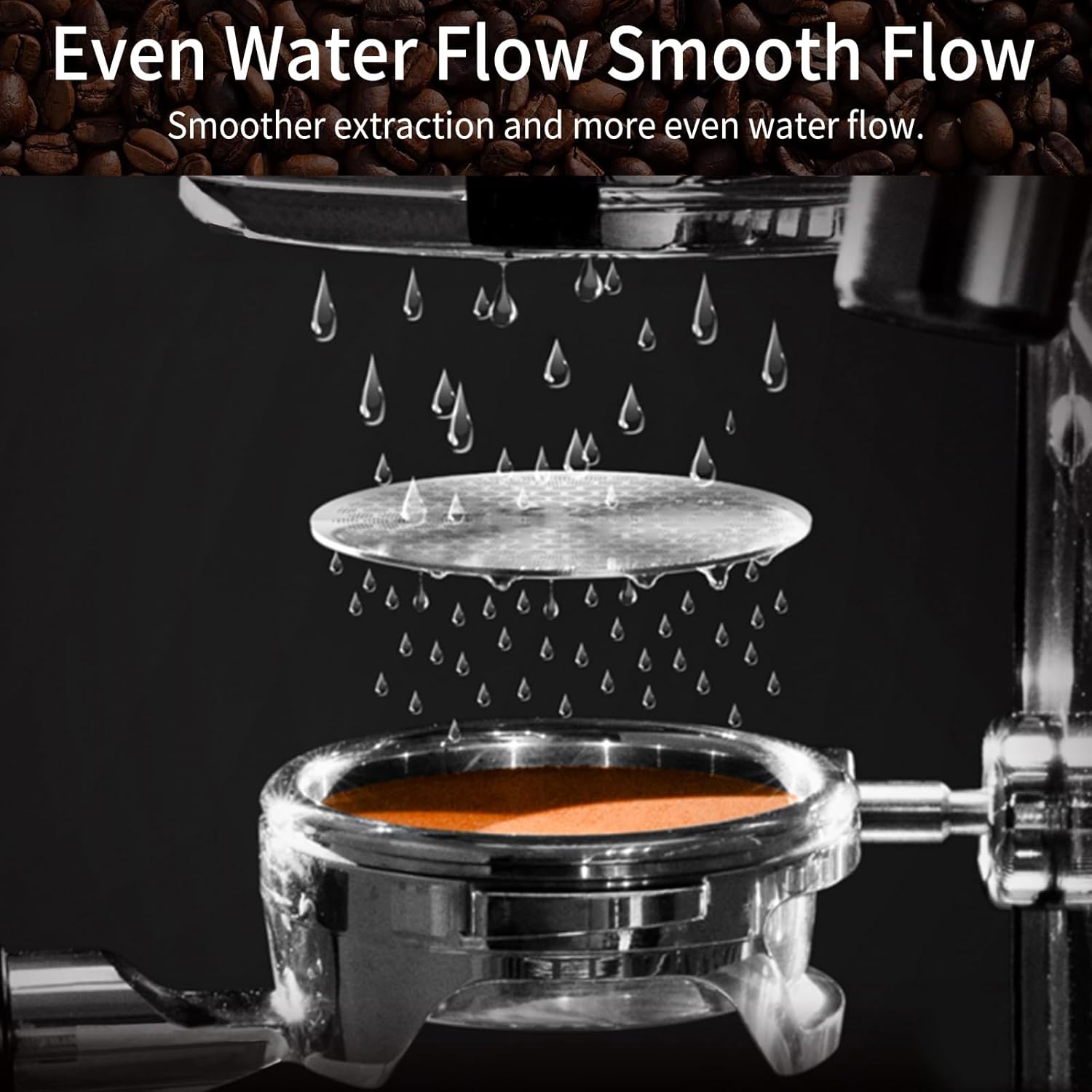 - food-grade304 stainless steel espresso Coffee puck screen ,effectively isolating coffee grounds to prevent clogging, the silicone pad serves to safeguard your countertop and espresso tamper from potential damage , 304 stainless steel distribution tool art pens and decorative stencils can draw beautiful coffee patterns stirring spoon is the perfect coffee companion