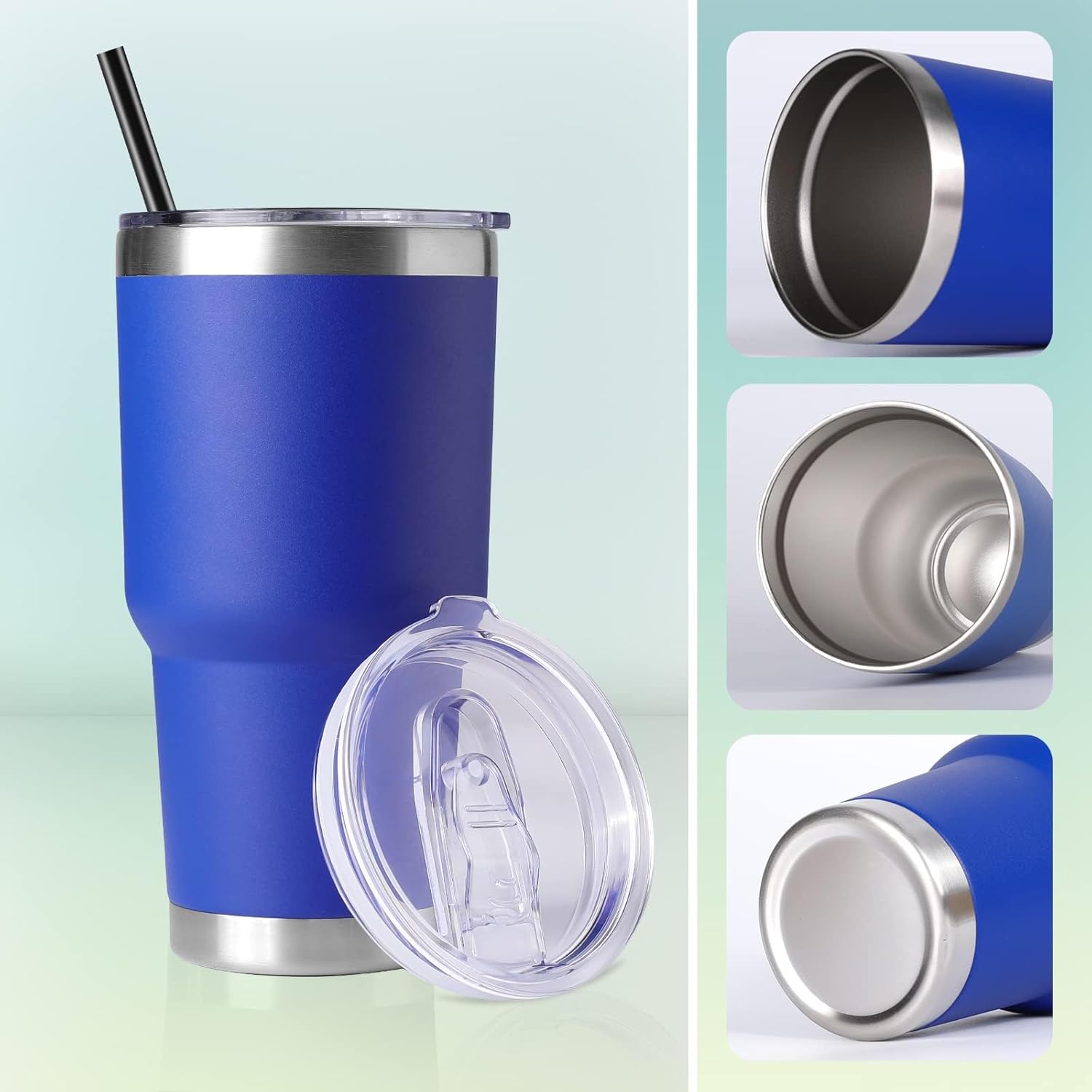DOMICARE 30oz Tumbler Bulk with Lid and Straw, Double Wall Travel Coffee Mug, Insulated Vacuum Stainless Steel Tumblers, Powder Coated Tumbler Cup (Dark Blue, 8)
