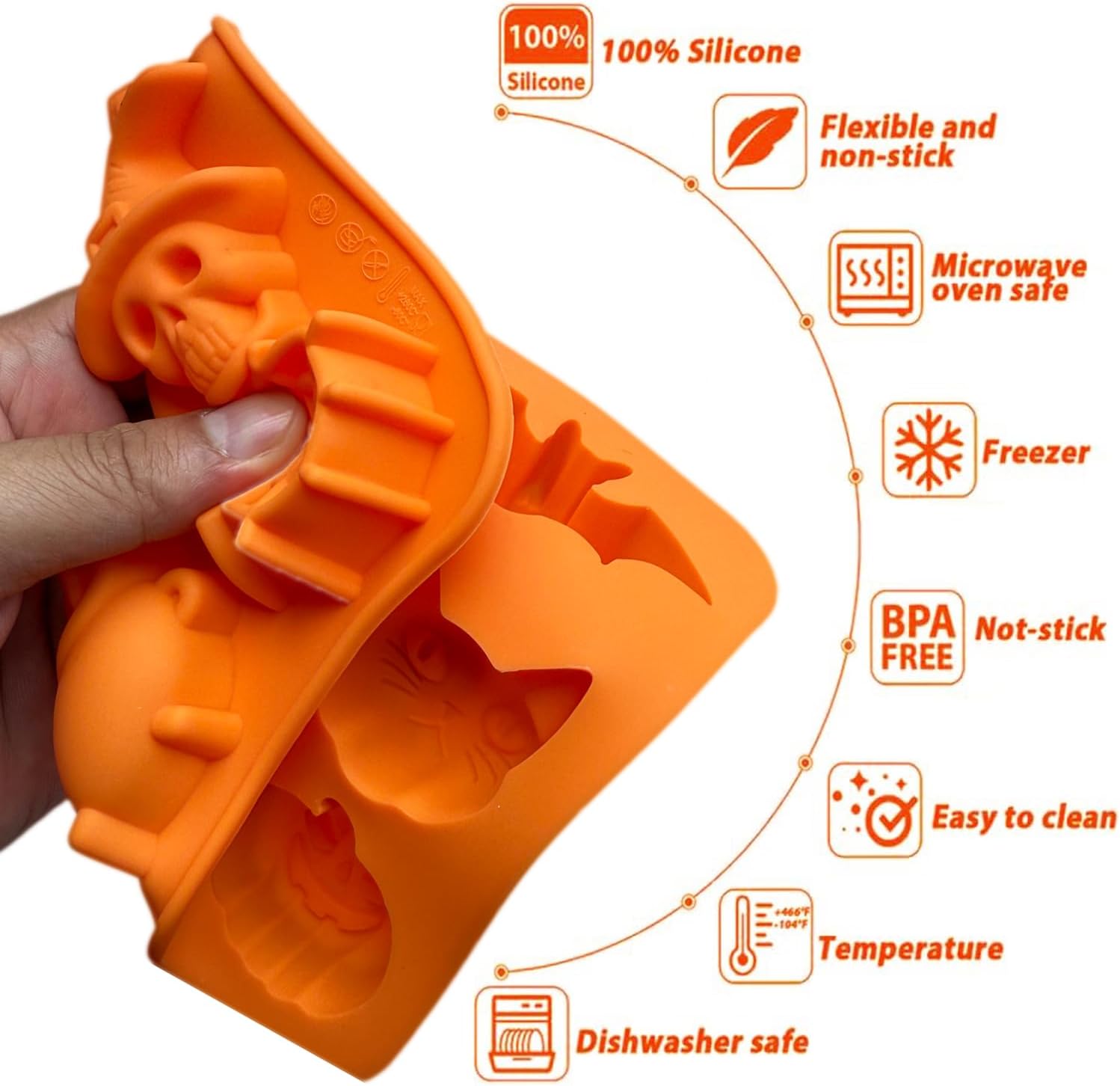 - Halloween Molds Set: you will get 2 pack orange Halloween silicone molds, each mold have 8 cavities in 8 shapes, total 16 cavities. These Halloween molds silicone can be used as dessert, candy, or cake decorations for Halloween parties or other themed events, allow you to develop your imagination and operational ability and create a special festive atmosphere.