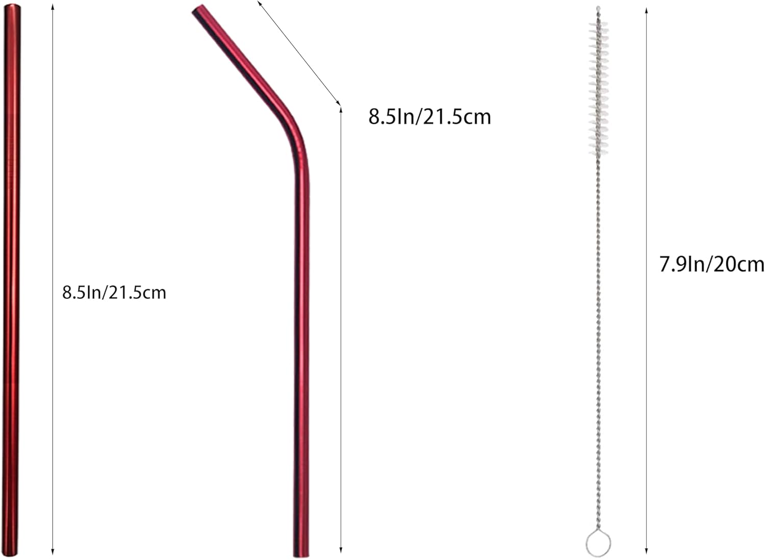 10 Pcs Stainless Steel Straws, Reusable Drinking Straws, 5 Straight + 5 Bent Metal Straws Set With 2 Pcs Cleaning Brushes (Red, 8.5 Inch)