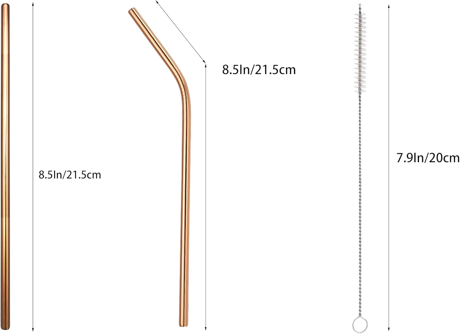 10 Pcs Stainless Steel Straws, Reusable Drinking Straws, 5 Straight + 5 Bent Metal Straws Set With 2 Pcs Cleaning Brushes (Rose Gold, 8.5 Inch)