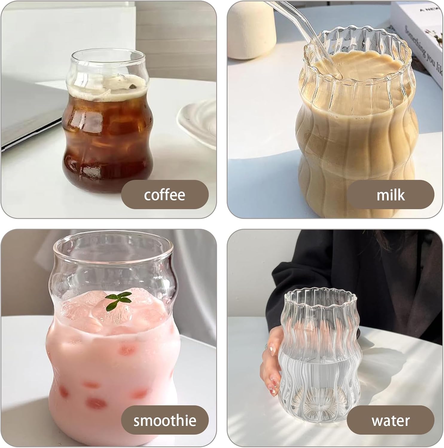 - ⟣Unique Design: Cute drinking glasses uses a vintage wave shape design design to add a unique beauty to your kitchen, perfect for cute glass display or use as an iced coffee cup. Matcha glasses has an elegant appearance and complements any dining table.