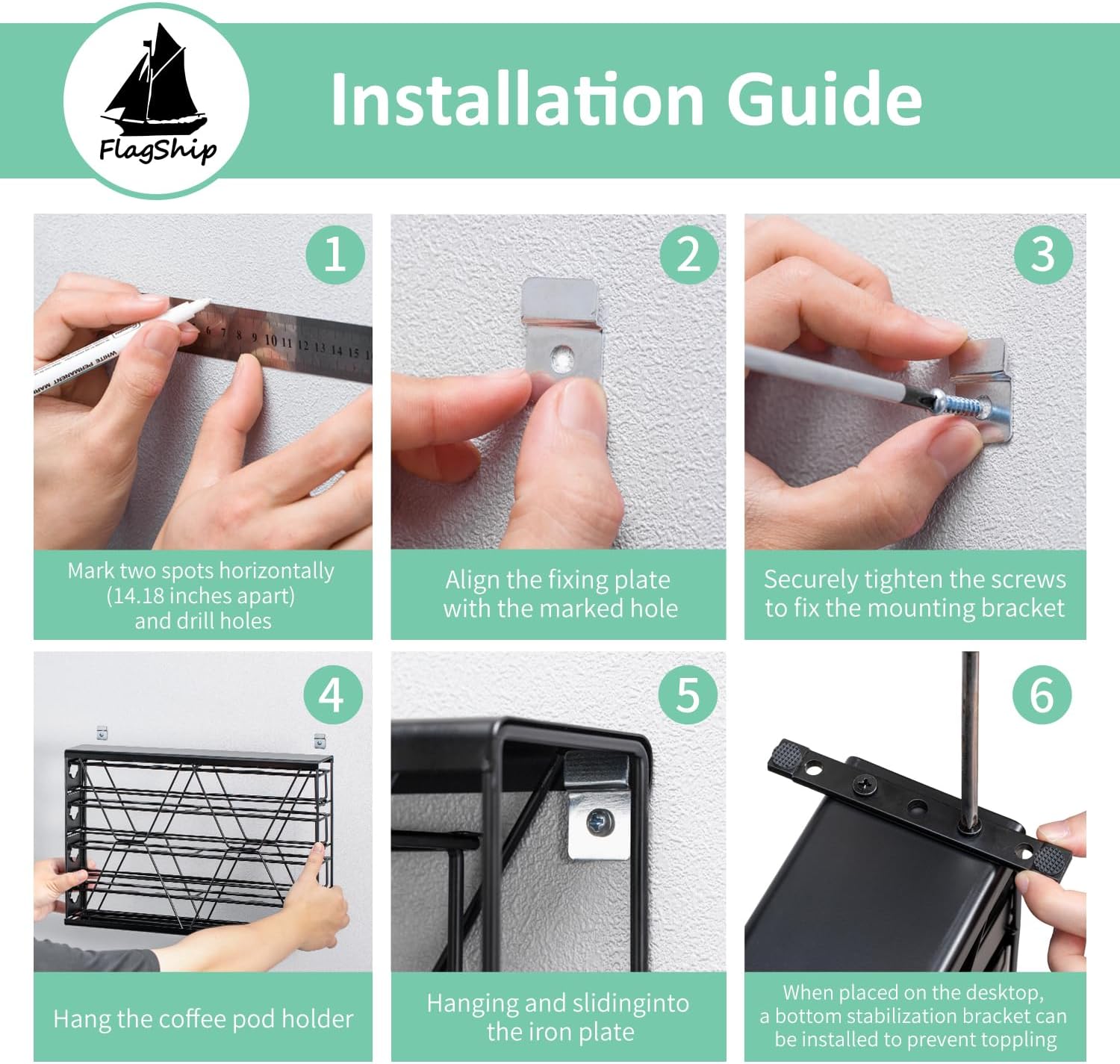 FlagShip 6-Tier Coffee Pod Holder for K Cup - 42 Capsule Max Capacity Metal Rack, Ultra-Efficient Corner Storage Space Saving Design