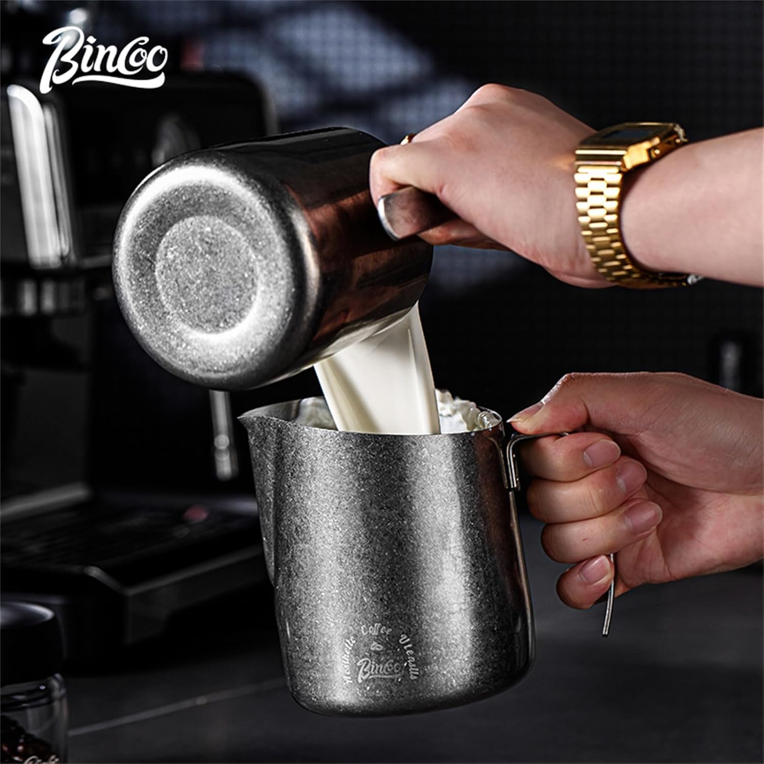 - 【 Magic Spout for Picture-Perfect Lattes 】That sharp eagle beak spout?Espresso frother cup is your secret weapon for creating Instagram-worthy hearts, swans, and rosettas - even when you're still half-asleep on morning shift.