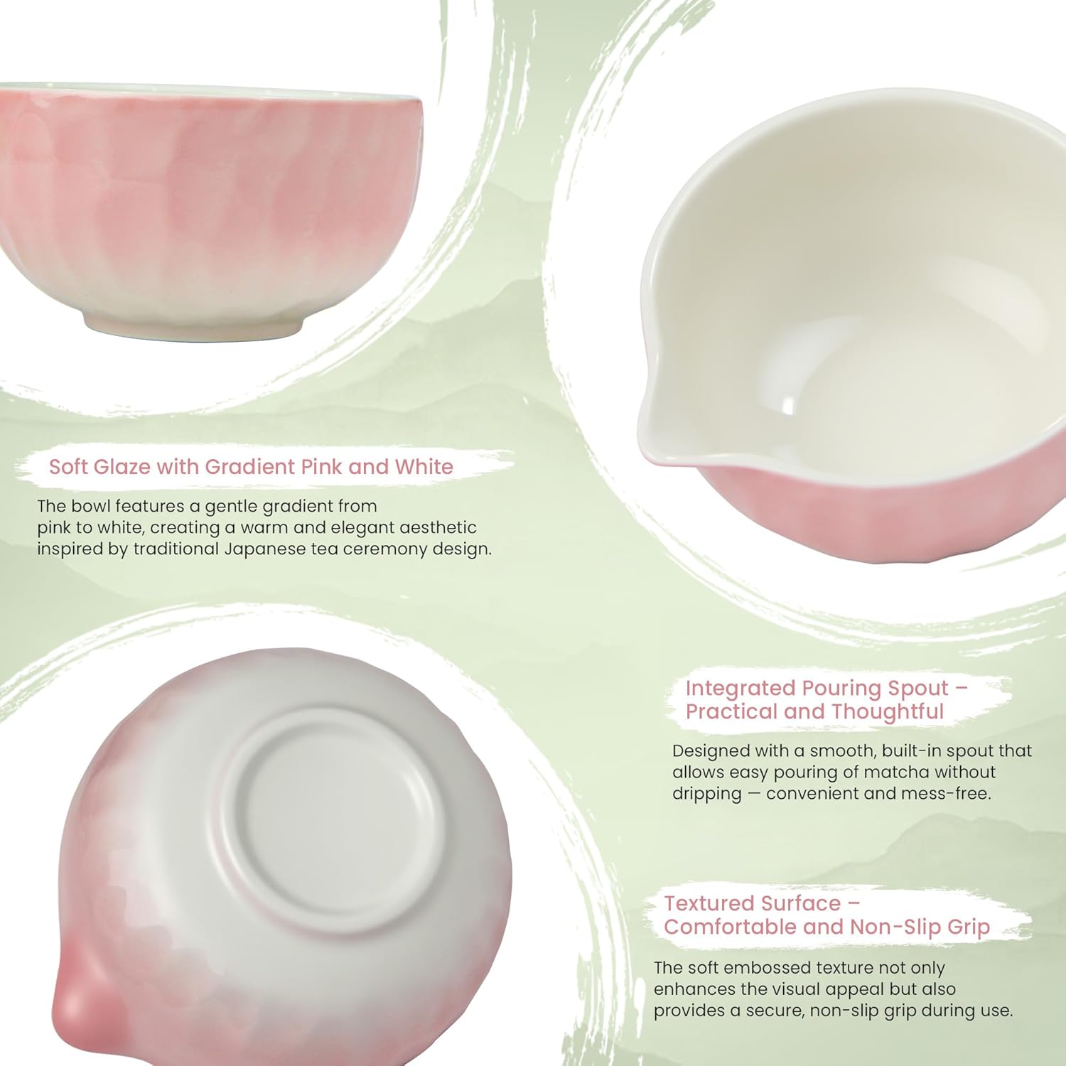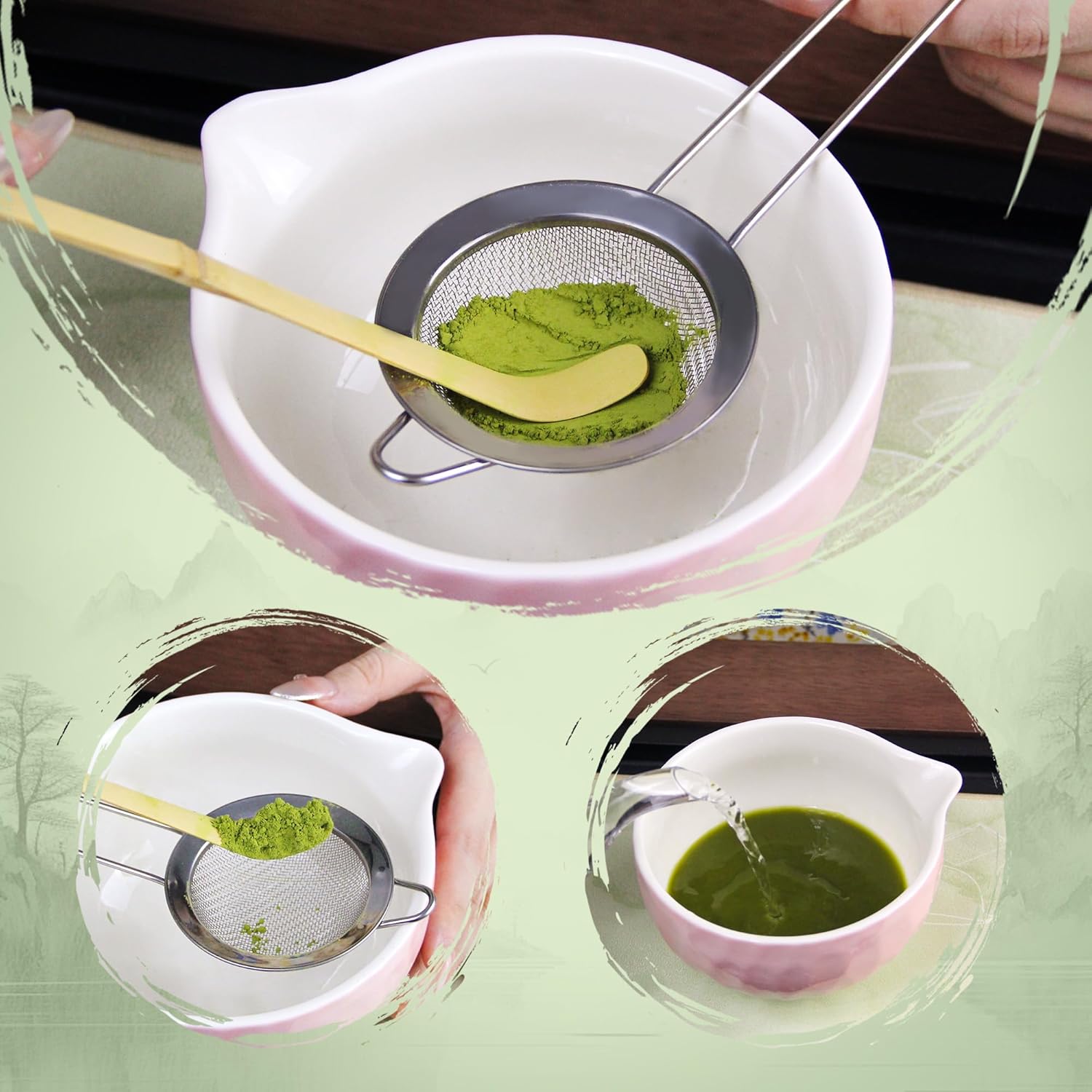 7-Pcs Matcha Whisk Set - Ceramic Matcha Set Includes Bowl,Whisk,Holder,Bamboo Scoop,Scoop Rest,Sifter & Tea Towel – Japanese Traditional Tea Kit for Beginners & Tea Lovers (Gradient Pink)