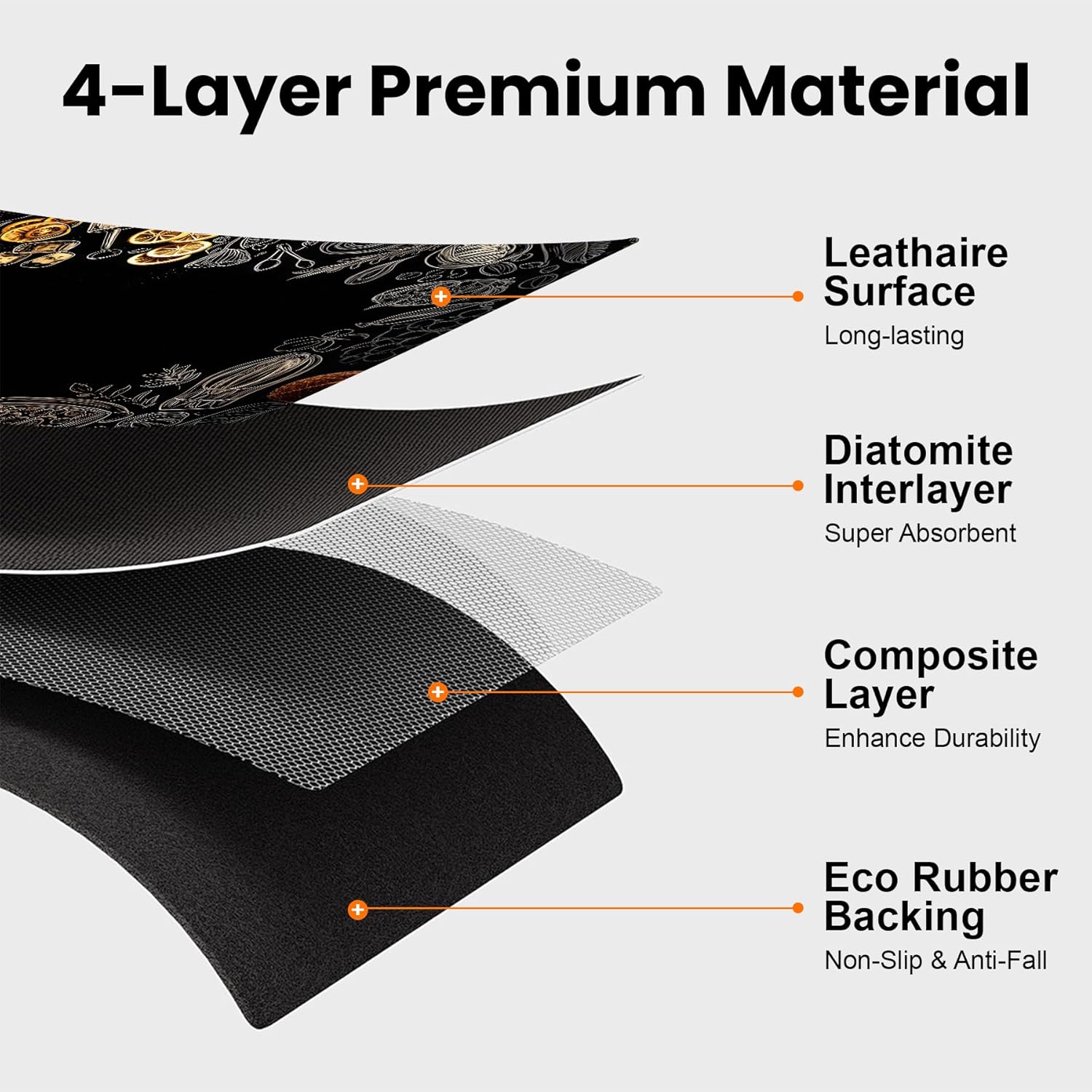 - Premium Coffee Mat - BVBOX 17"x 32" coffee bar mat is made of durable and tear-resistant materials, ensuring long-lasting durability. Its four-layer design features super water absorption, leak-proof and anti-slip performance, providing reliable protection for your countertop.