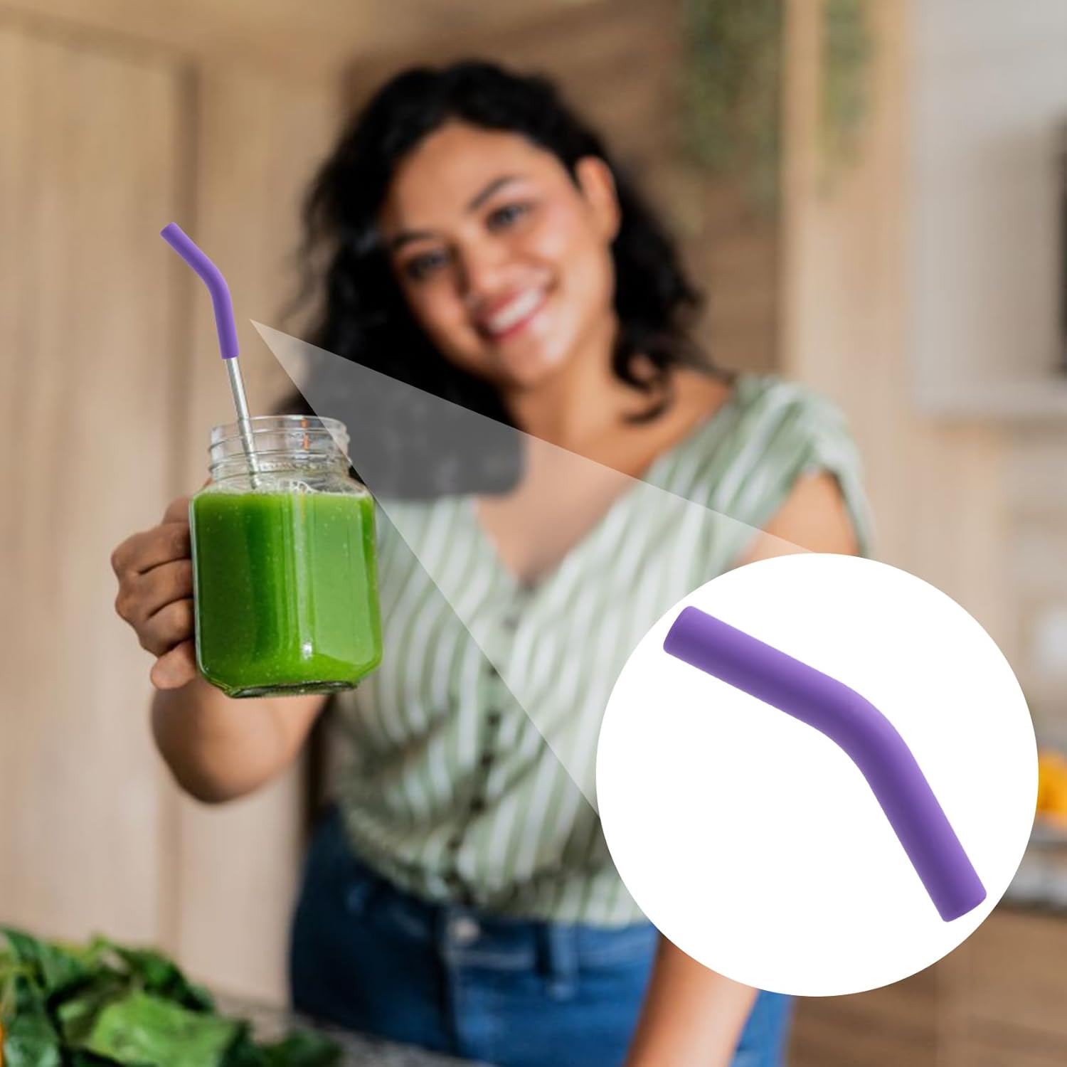 6pcs Food-Grade Silicone Metal Straw Tips, Reusable Flex Elbow Straws Cover Replacement Tips, Soft Straw Toppers Kits for 8 mm Stainless Steel Metal Straws - Dark Purple