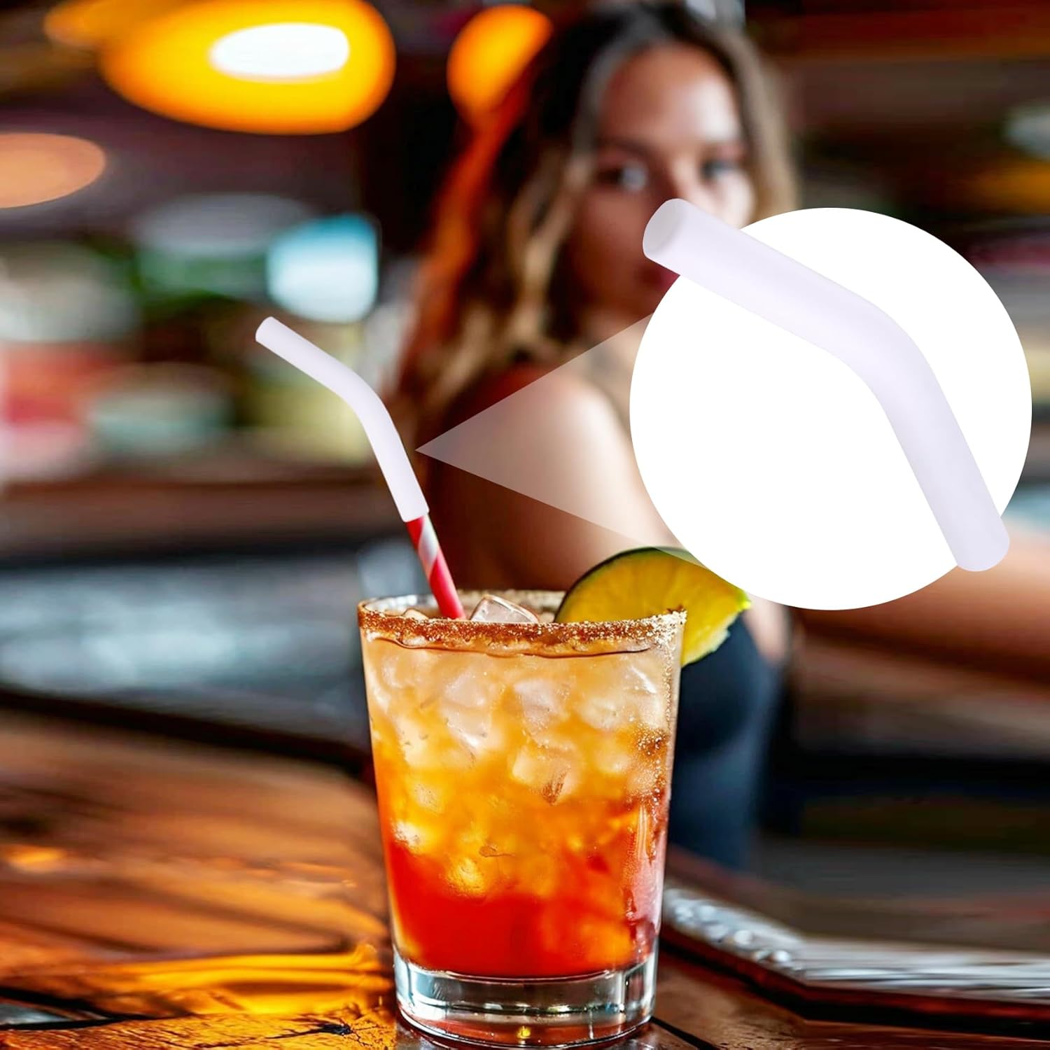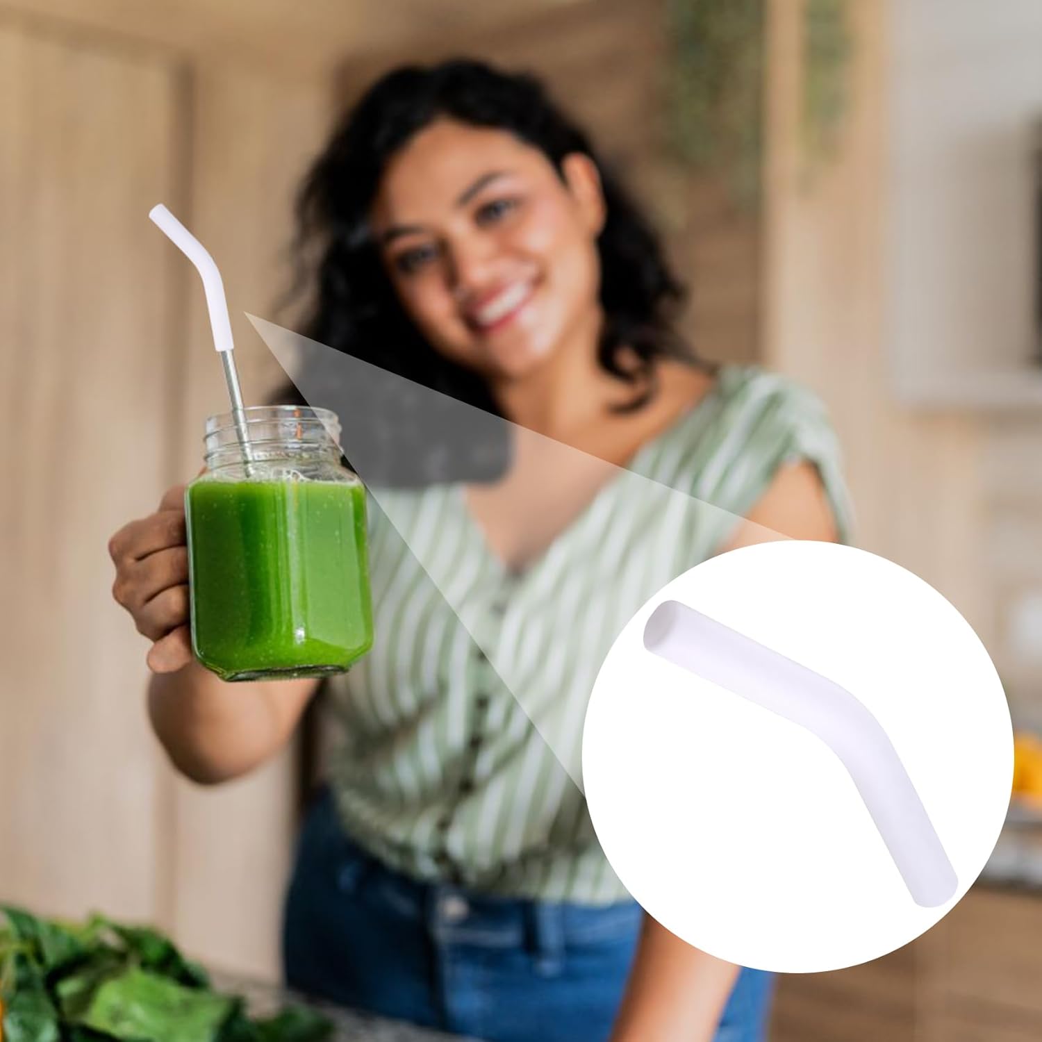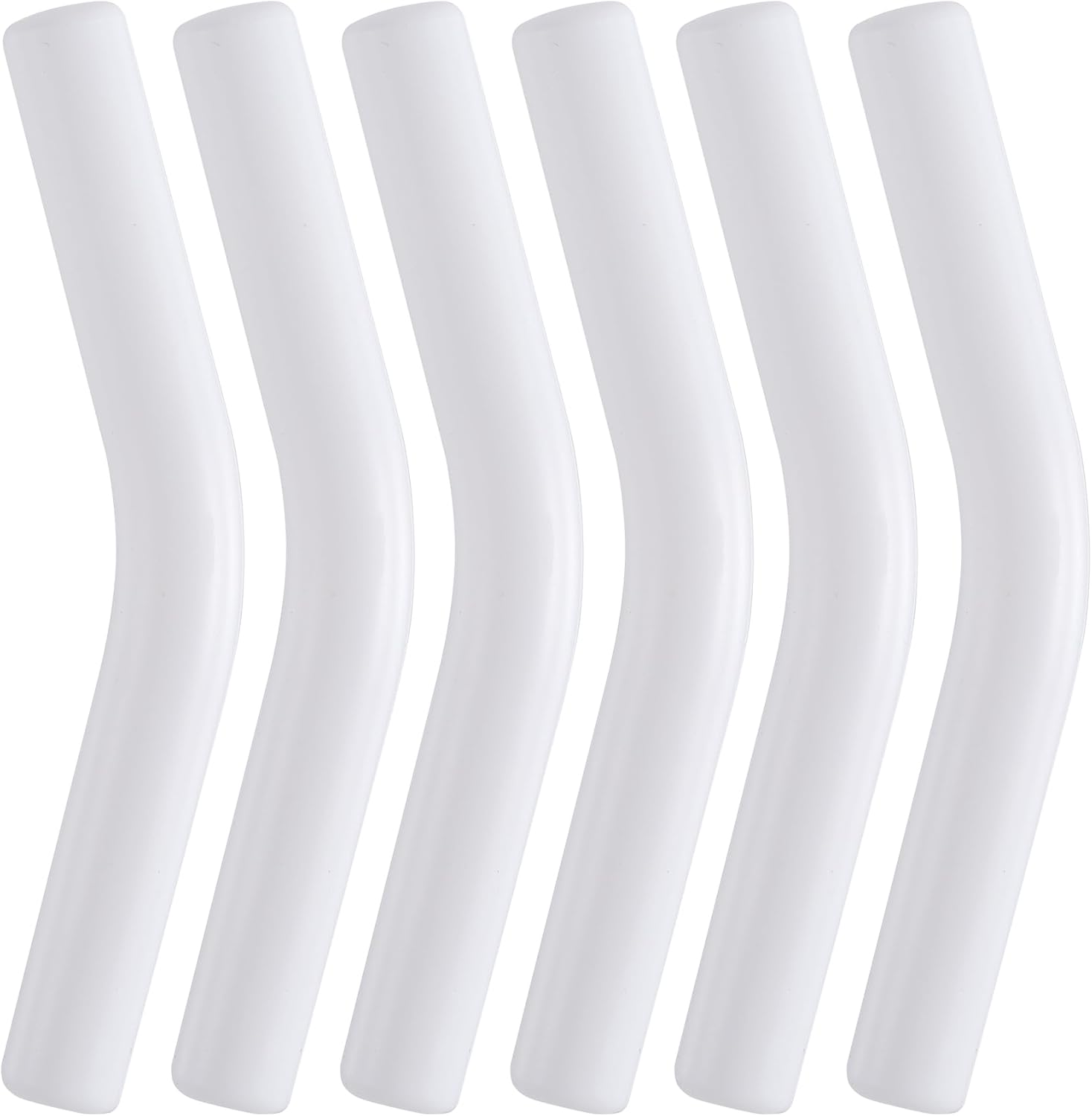6pcs Food-Grade Silicone Metal Straw Tips, Reusable Flex Elbow Straws Cover Replacement Tips, Soft Straw Toppers Kits for 8 mm Stainless Steel Metal Straws - White