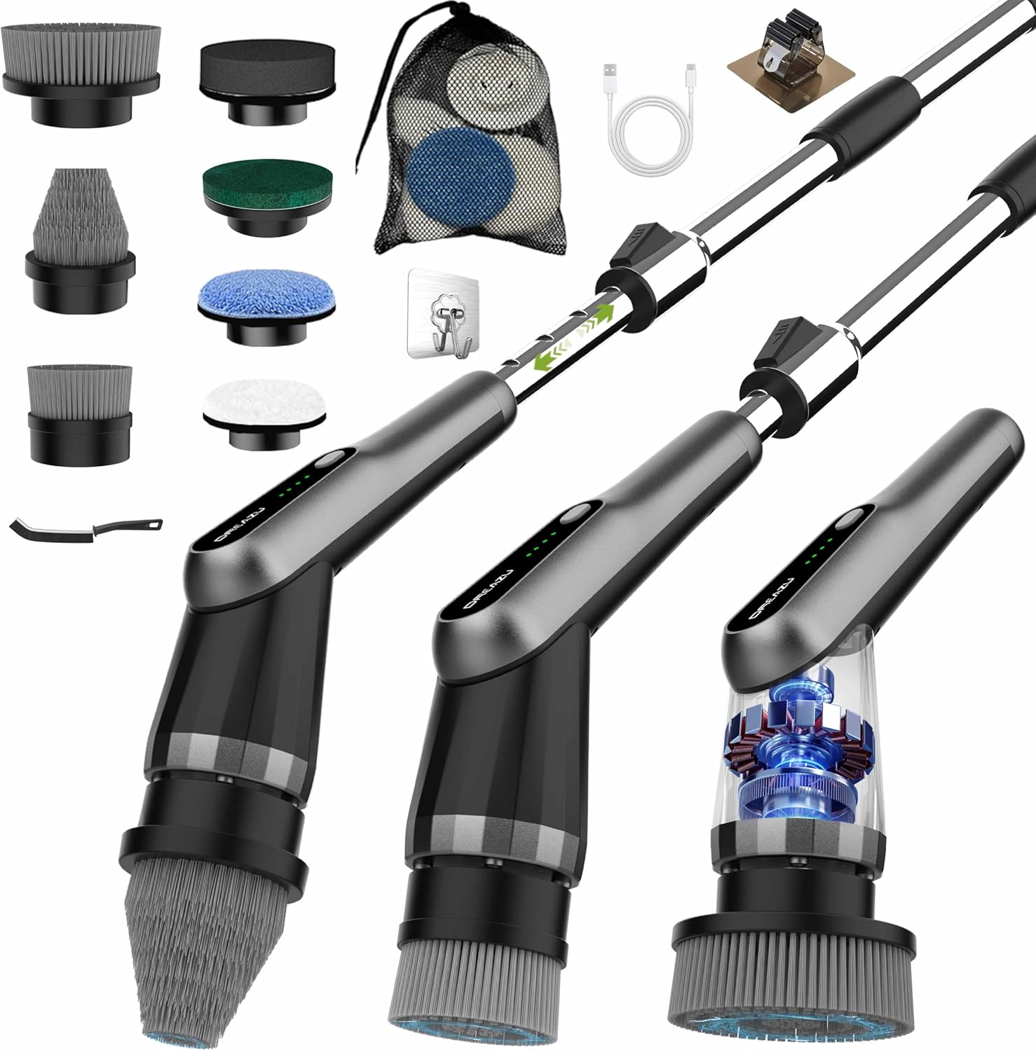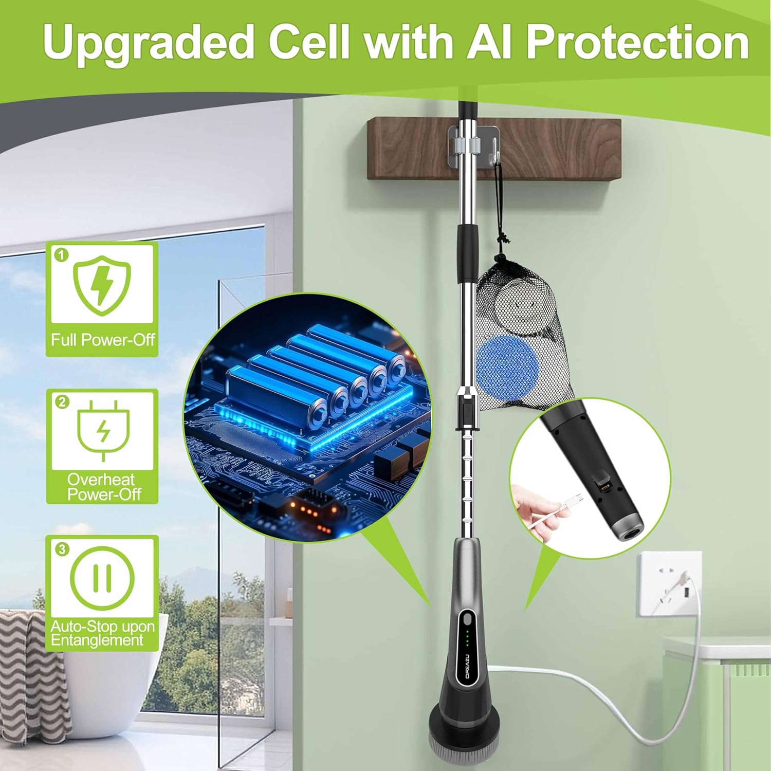 - 【Powerful & Durable Performance】 Battery and motor upgrades feature enhanced cell technology and passed a 3600-hour rotation test, ensuring stronger and longer-lasting torque. The extendable rod material and functionality have also been improved—just press to adjust the length. Now sturdier and more convenient, it’s the ideal shower scrubber with long handle.