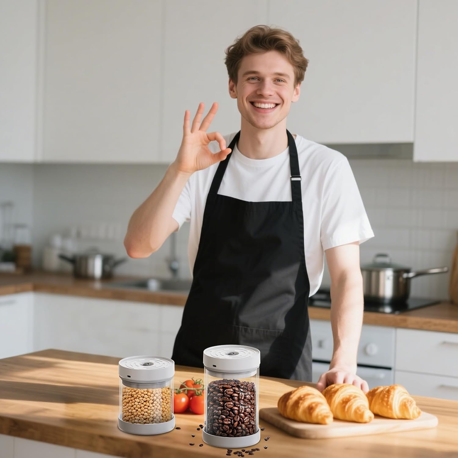 - IDEAL GIFT FOR COFFEE LOVERS: Ideal capacity of 700 ml for 10 ounces of coffee beans. The design of the vacuum coffee canister allows the rich oils and original flavor of the coffee beans to be retained, allowing you to enjoy rich and mellow coffee every day, a must-have tool for baristas and coffee lovers!