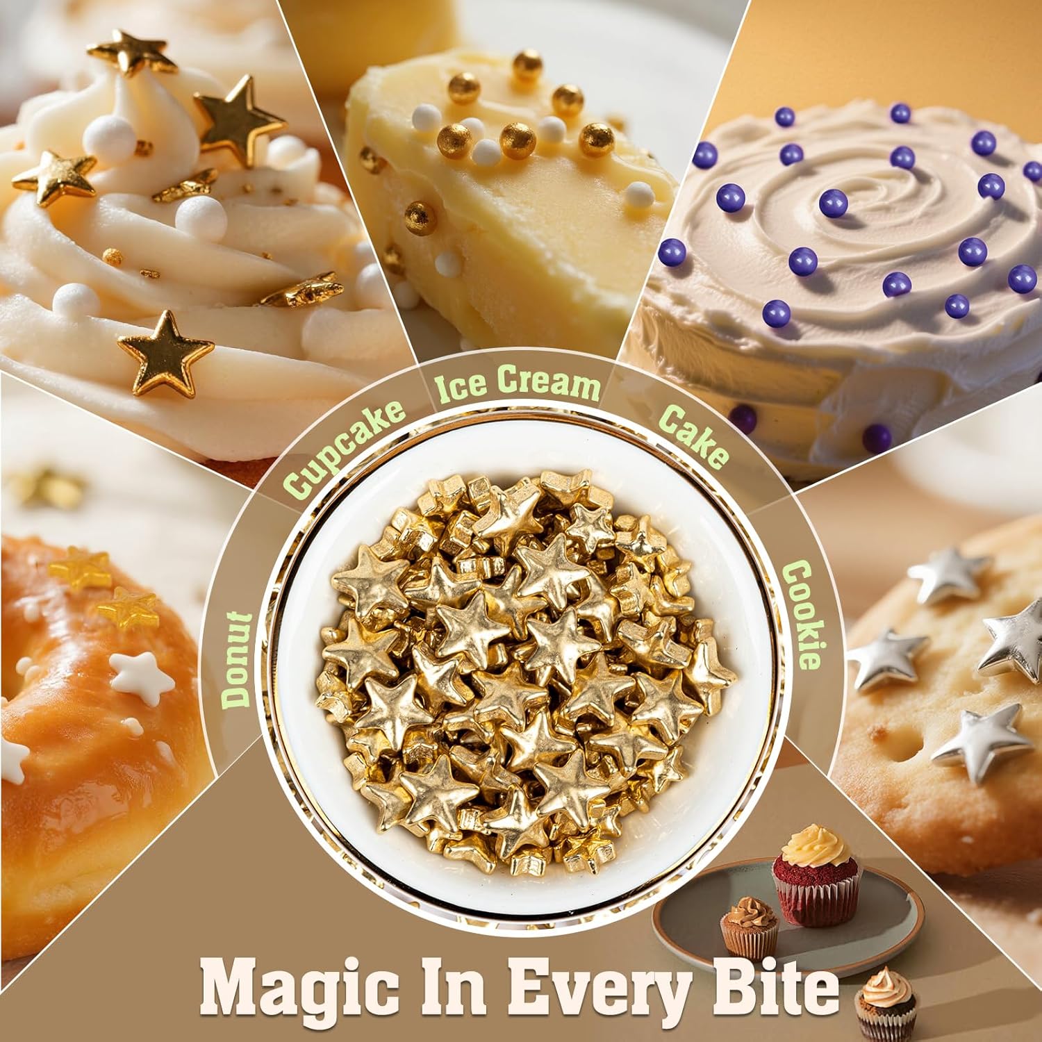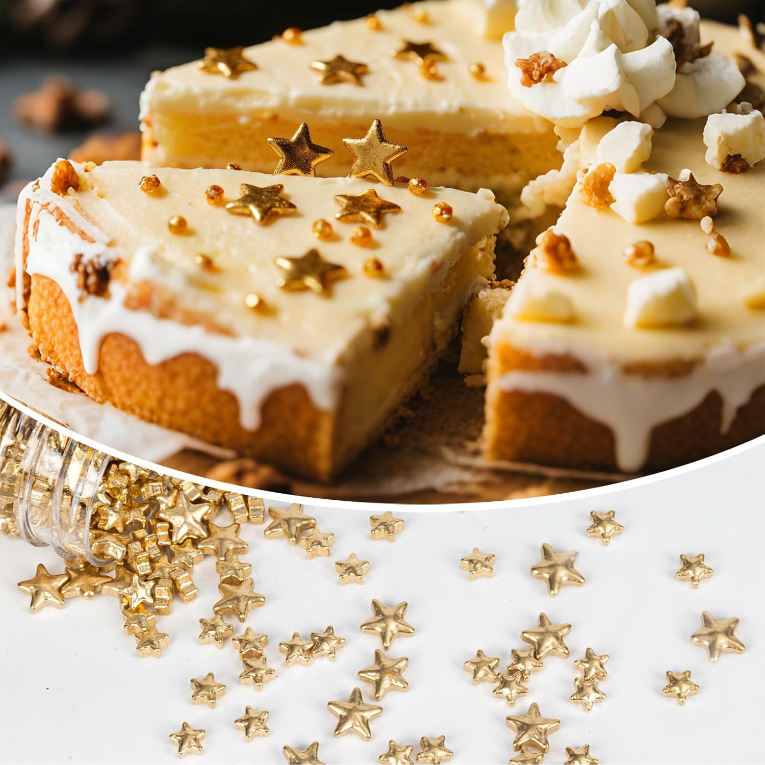 - 【Elegant Gold Stars for Versatile Use】:The bright gold color adds a beautiful, classy touch to desserts, making them look extra special. These gold star shaped candy are perfect for decorating cakes, cupcakes, cookies, giving them a shiny, eye-catching finish that’s sure to impress. Perfect for weddings, birthdays, anniversaries, Halloween, Christmas, New Year's and other special occasions.