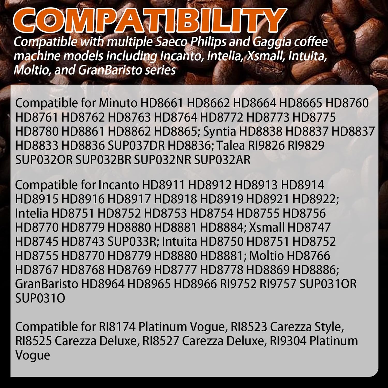 - COMPATIBILITY: Compatible with multiple Saeco Philips and Gaggia coffee machine models including Incanto, Intelia, Xsmall, Intuita, Moltio, and GranBaristo series