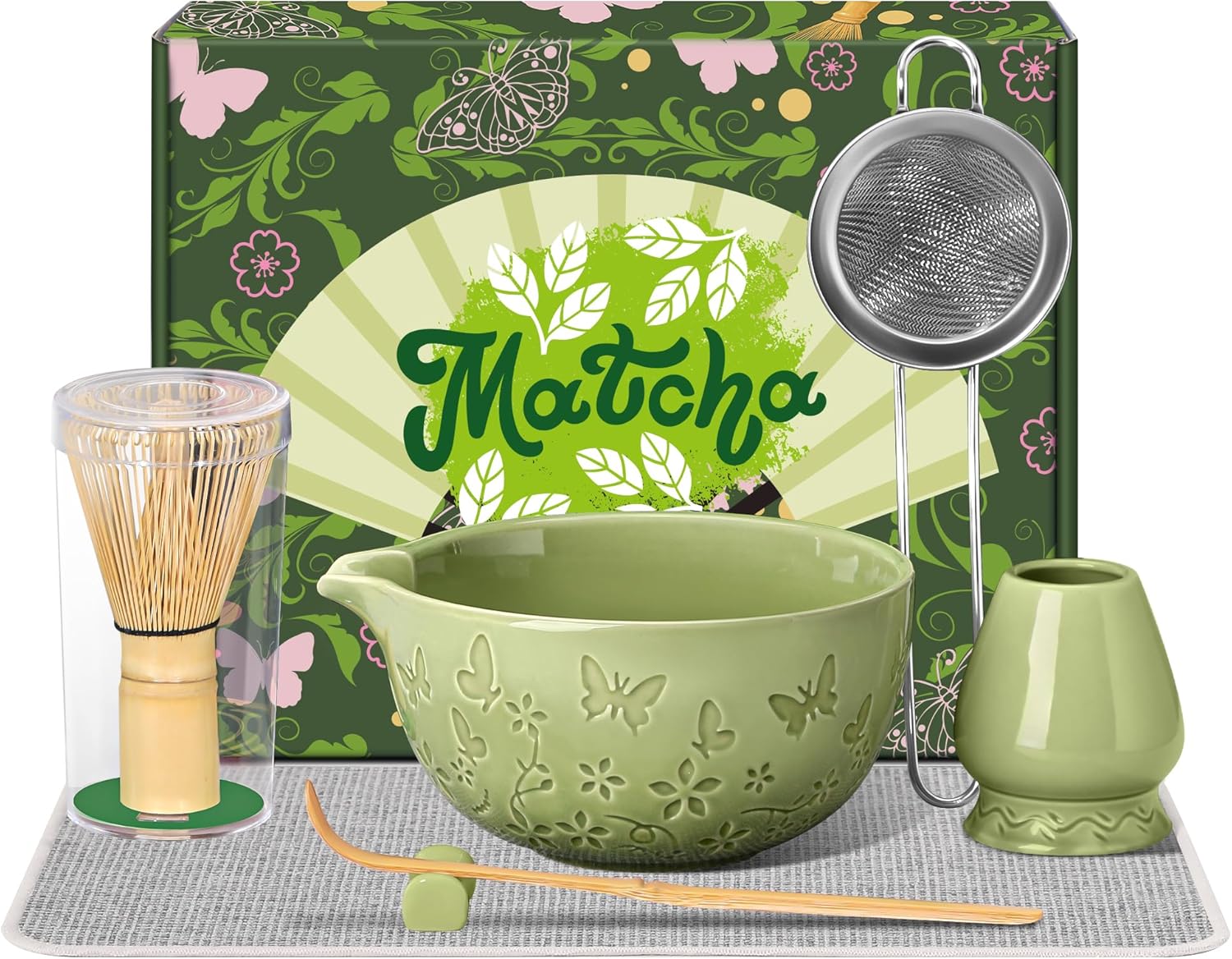 - 7Pcs Packaging: This matcha set includes the necessary tools for creating an authentic matcha experience: ceramic matcha bowl, ceramic whisk holder, bamboo matcha whisk, bamboo spoon, spoon stand, powder starter sifter, tea towel and manual. 7PCS matcha whisk set can fully meet the steps required to make matcha and enjoy a more pleasant matcha time.