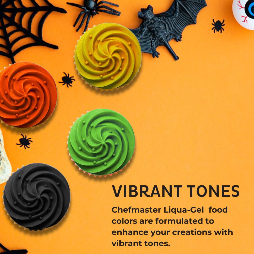 Chefmaster - Halloween Colors Liqua-Gel Food Coloring Kit - Water-Based Food Coloring Gel - 4 Pack - Highly Pigmented, Create Vividly Colored Desserts, Easy-To-Blend Formula - Made in the USA