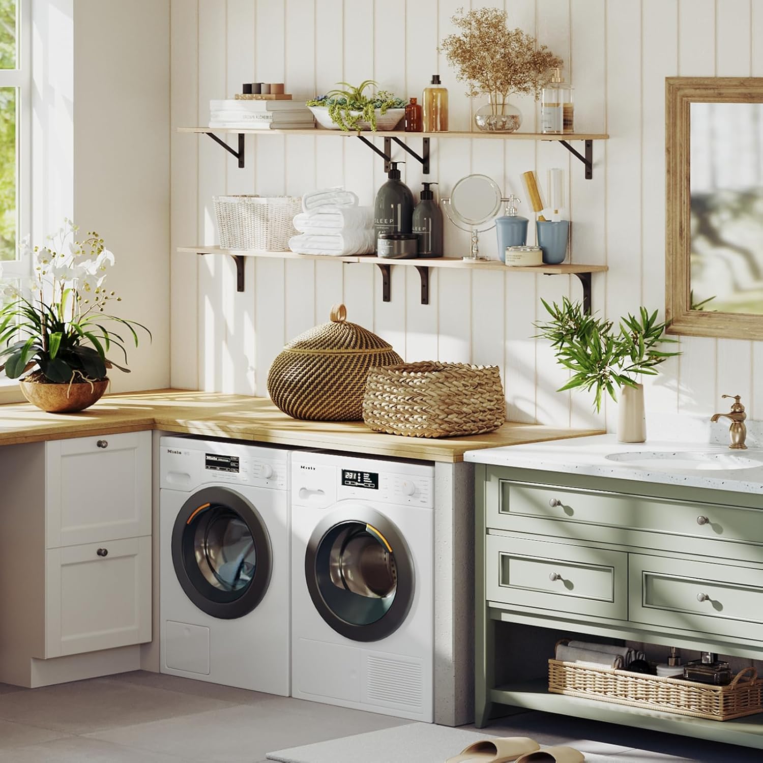 - 【Wide Application】Extra long shelves for wall storage is gospel of small family to enjoy the tranquility of home. Large floating shelves allow you to store books, games, decorations, plants, towels, photos, collectibles etc. Even to be an ideal play area for your cats. Create additional storage in living room, bathroom, bedroom, closet, balcony, study, kitchen, laundry, bar area, pantry and office