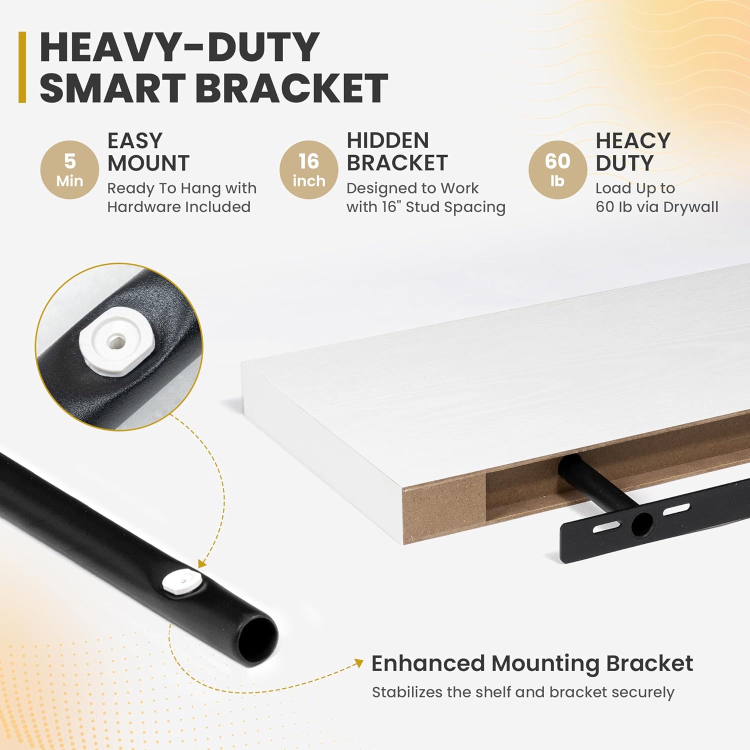 - [ROBUST & SECURE MOUNTING]: Equipped with a sturdy, hidden mounting bracket, these 72-inch floating shelves ensure solid support for your items. Designed for easy and secure installation, they come with all necessary hardware for a firm, wobble-free setup, allowing you to confidently display decor, photos, or functional items with style.