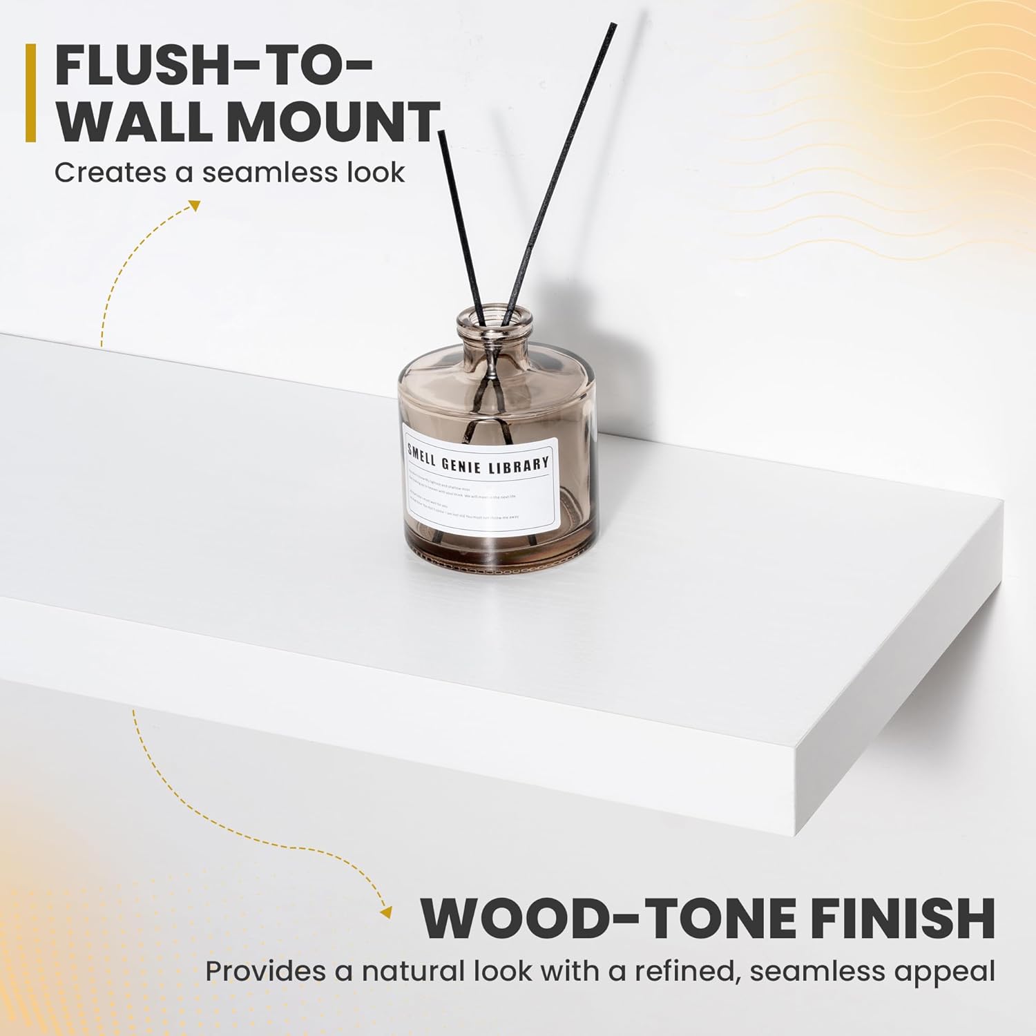 - [QUICK INSTALLATION WITH DETAILED GUIDES]: Our floating shelves include all mounting hardware and a comprehensive guide, enabling quick setup in under 10 minutes. Follow the step-by-step instructions to enjoy these beautiful shelves effortlessly, instantly upgrading your living space.
