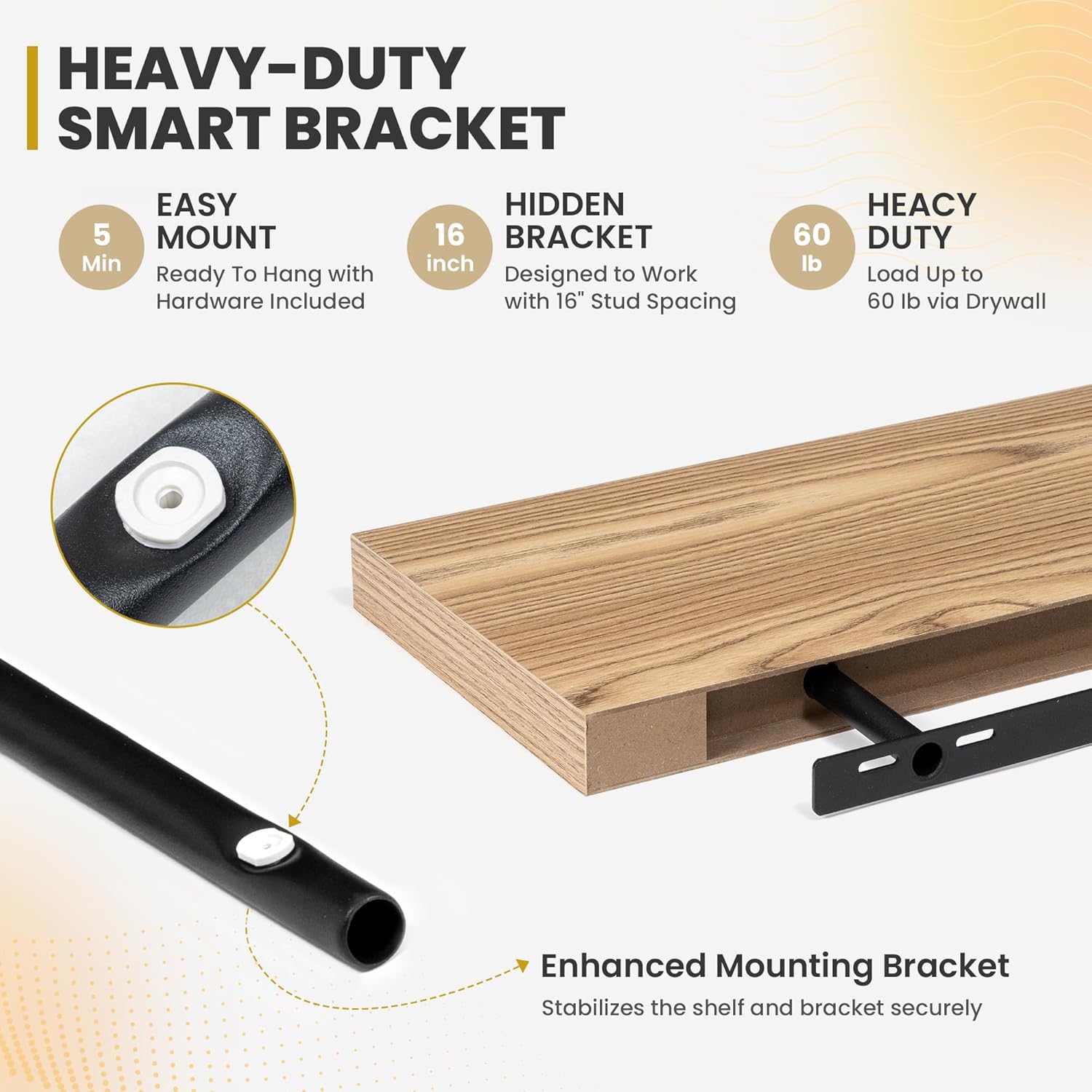 - [ROBUST & SECURE MOUNTING]: Equipped with a sturdy, hidden mounting bracket, these 72-inch floating shelves ensure solid support for your items. Designed for easy and secure installation, they come with all necessary hardware for a firm, wobble-free setup, allowing you to confidently display decor, photos, or functional items with style.