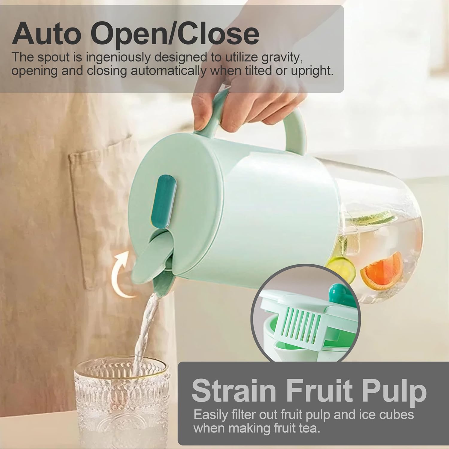 - Shatterproof Protective Shell on Top – Unlike all-glass pitchers, Crafted from food-grade plastic, both the spout and handle will not break due to bumps and knocks; no need to handle with care, greatly enhances overall usability and peace of mind.