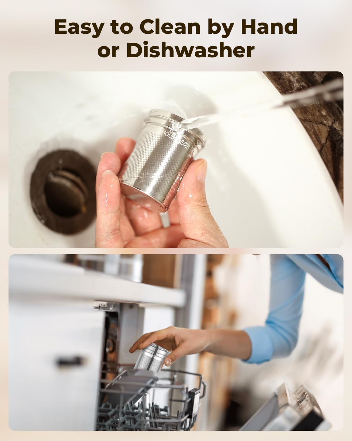 - Upgraded Micron Mesh: The mesh of the House Again tea filters, thanks to a more advanced perforation process, can be micron-sized to trap the smallest tea particles. No tea dregs to bother you. Loose leaf tea steeper is Ideal to hold tea leaves, particles, or ground coffee