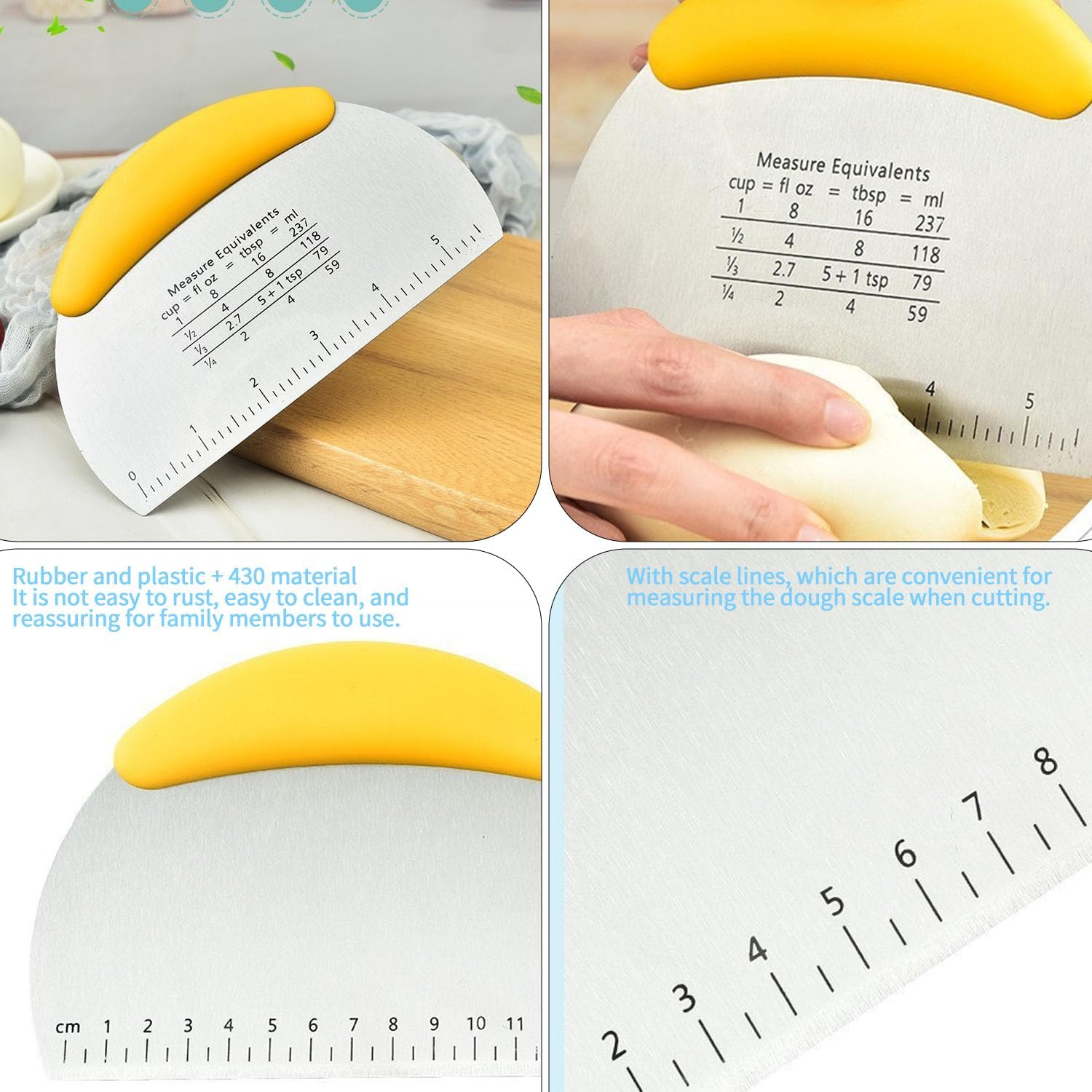 - 【Helpful Measuring Scale】Equipped with a measuring scale, these dough cutters double as scale knives. This feature aids in precise cutting, whether for cakes, pizza, or pastry bread. It simplifies portion control.