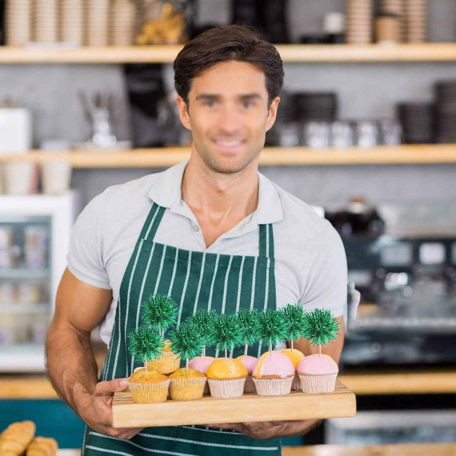 40 PCS Foil Firework Cupcake Toppers Green Sparkler Cupcake Picks Sparkle Tinsel Fireworks Decorations Cocktail Fruit Toothpick for Firework Theme Birthday Wedding Graduation Party Decoration Supplies