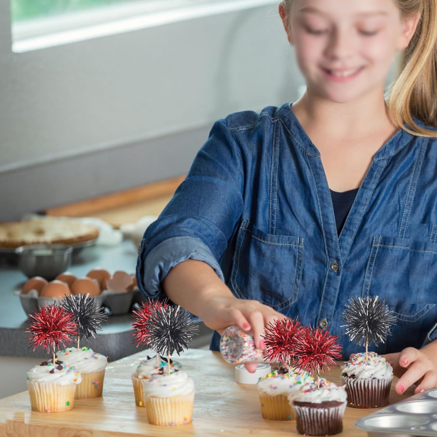 - Buy with Confidence ! Our foil firework cupcake toppers are intended for decoration only, please do not put them in oven or microwave. Please contact us in case of any problems, we will do all we can to make you satisfied.