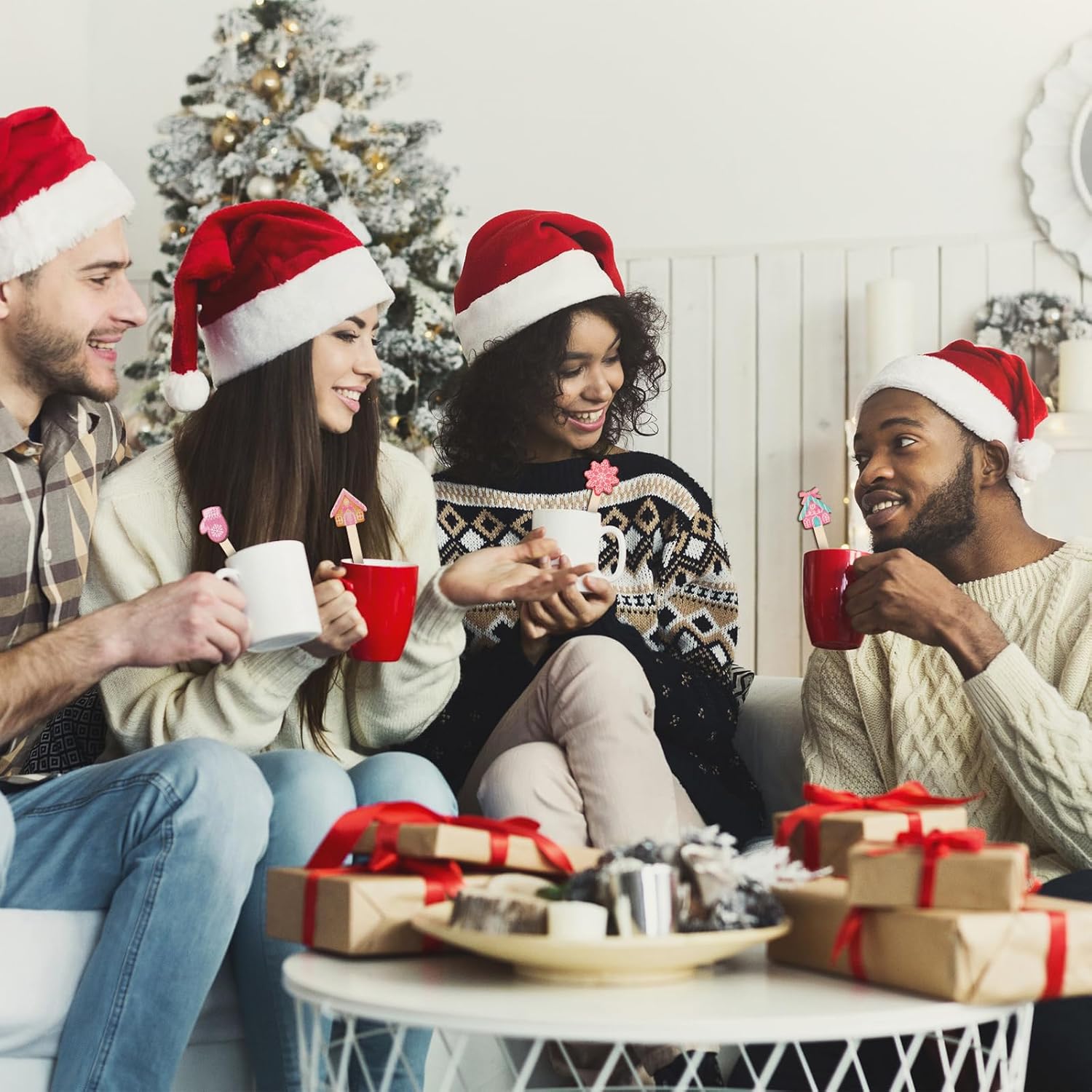 - Creative Pattern Design: these coffee stir sticks have different Christmas gingerbread man printed on the round handles, the beautiful patterns can add a different kind of fun to your party and make your guests spend a memorable and enjoyable holiday