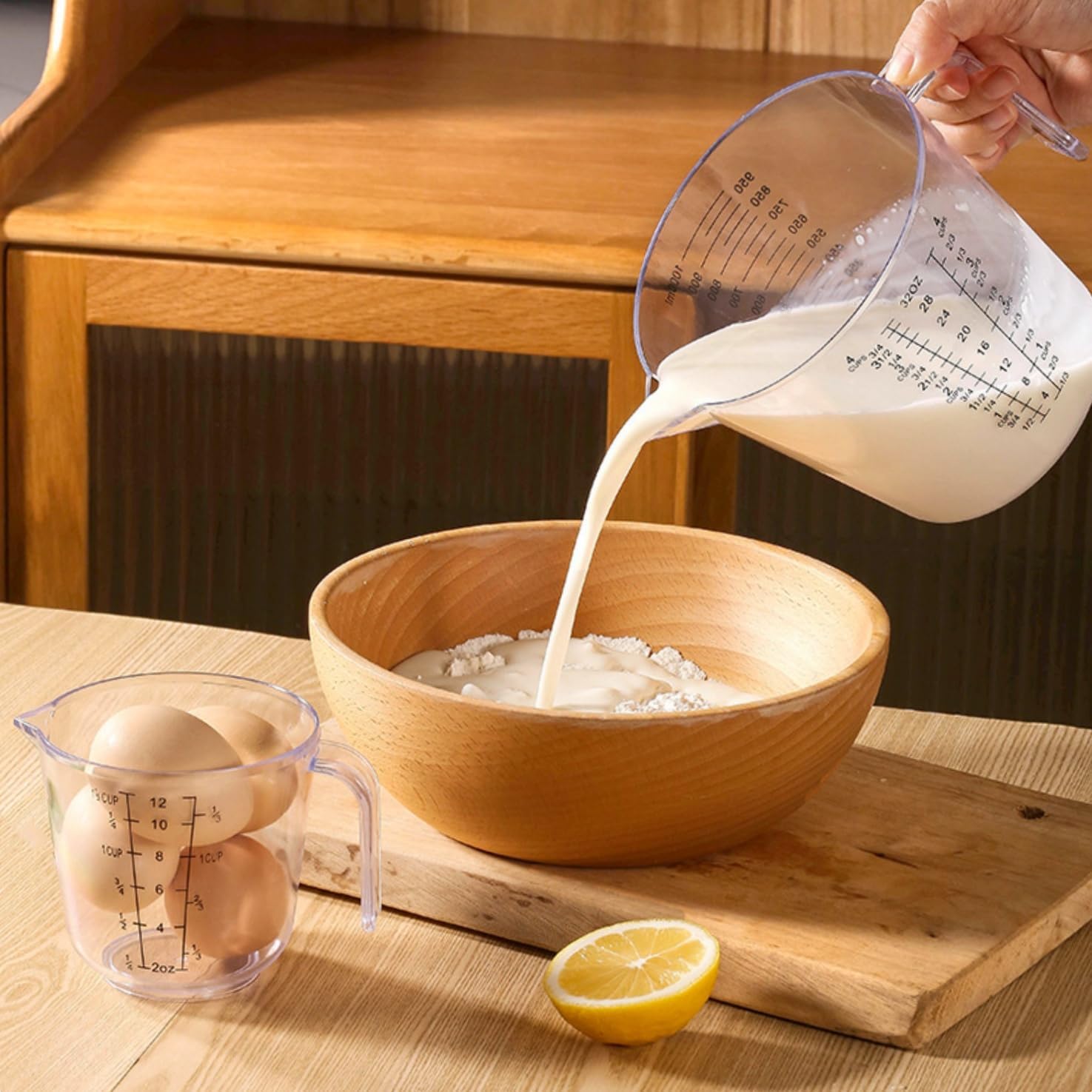 - 3 [Three Kinds of Scales]: Plastic measuring cup have Cups, Ounce, Milliliter-Accurate and easy to read,meet your different purpose.Very convenience for measuring both liquid and solid substances.