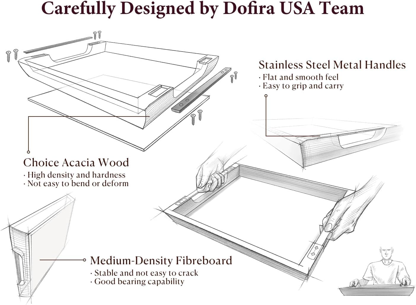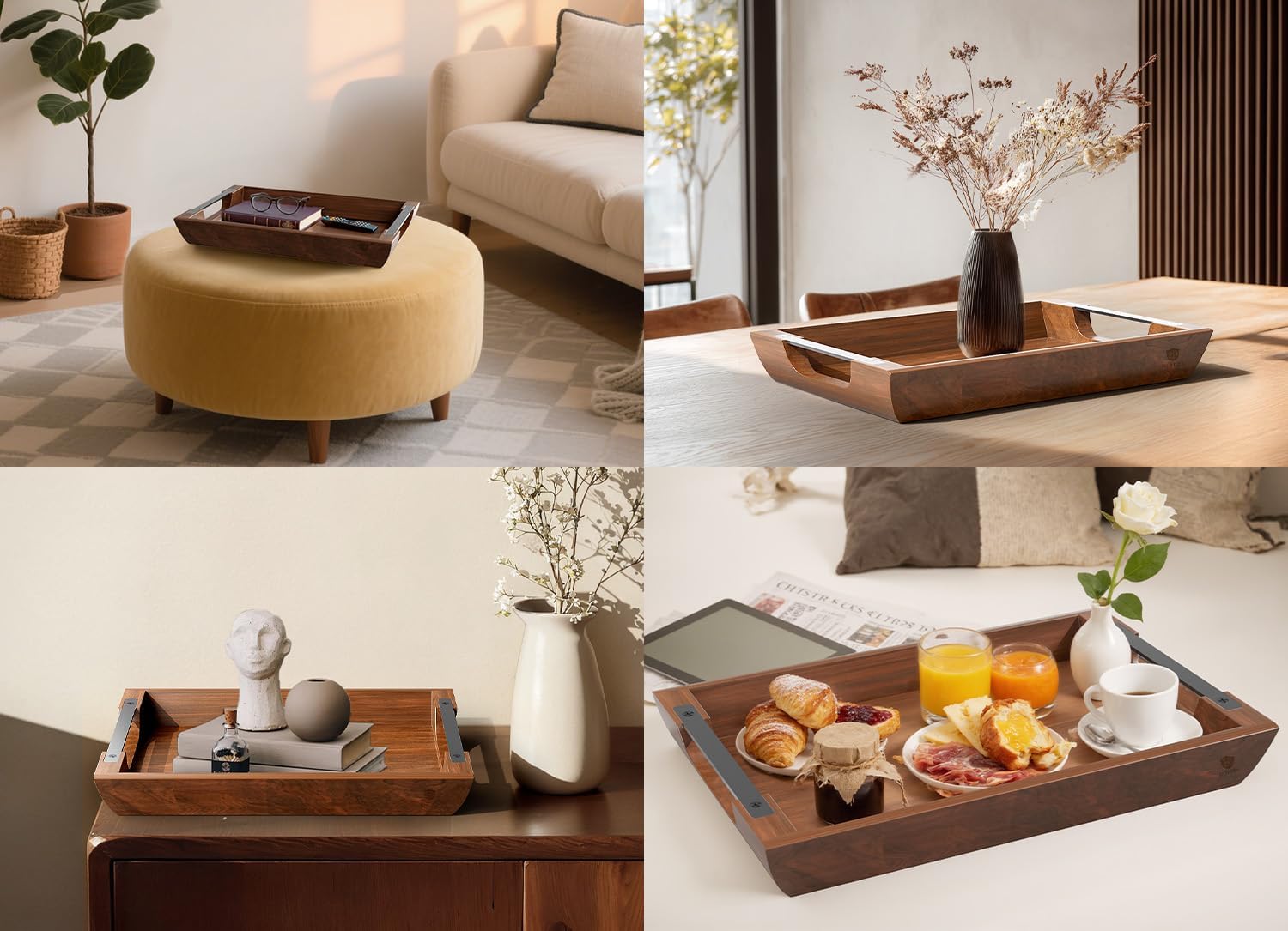 - Multi-Scenario Decor & Organization: Beyond serving: use as a vanity tray for perfumes, desk organizer for stationery, or bedside caddy for books/medication. Ideal for rocking chairs or uneven surfaces, it elevates everyday moments while complementing farmhouse, rustic, or contemporary styles