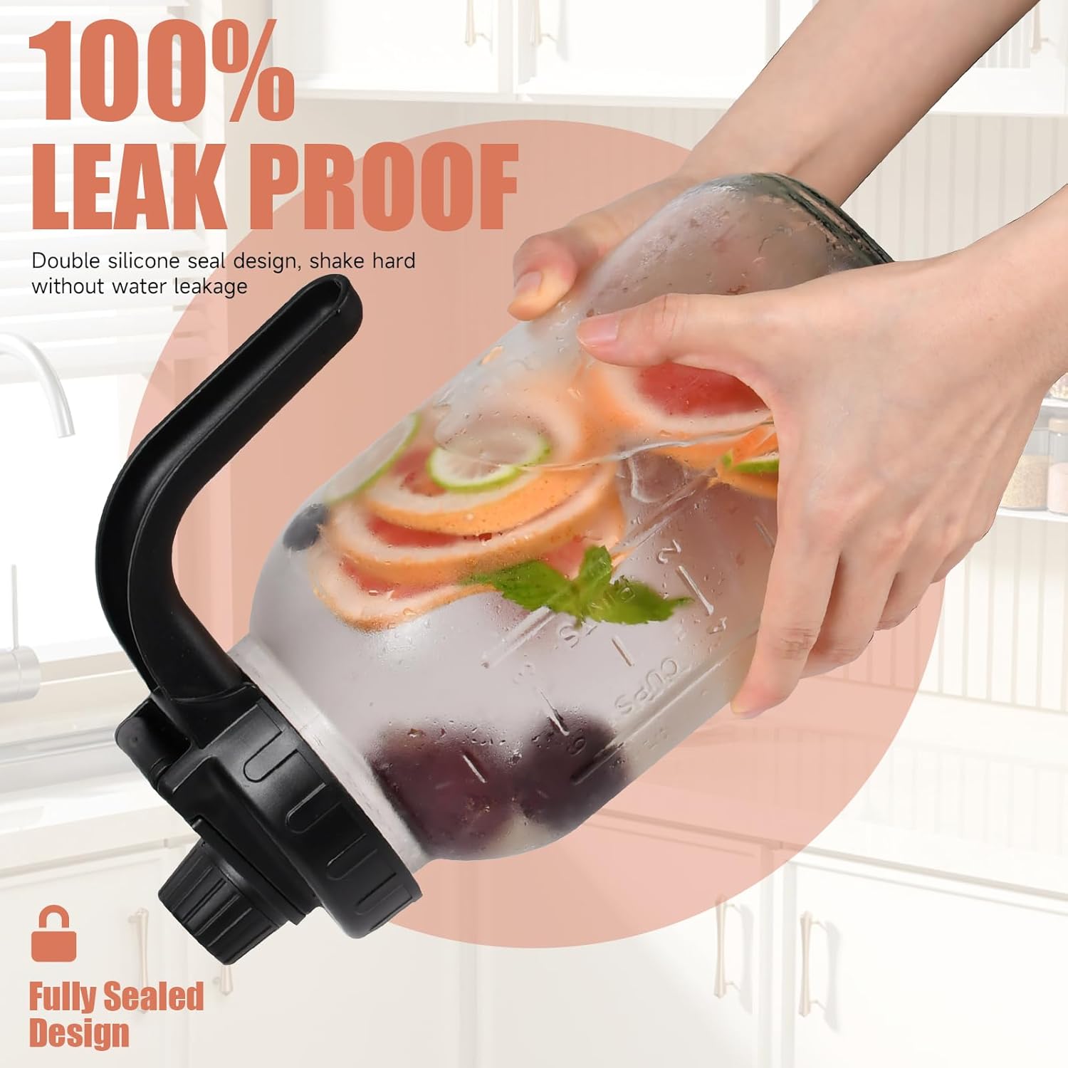 - Airtight & Leak-Proof Design: The airtight lid keeps drinks fresh longer and prevents accidental leaks, whether in the fridge or on the go. Enjoy peace of mind while storing your favorite beverages in this glass mason jar pitcher with lid.