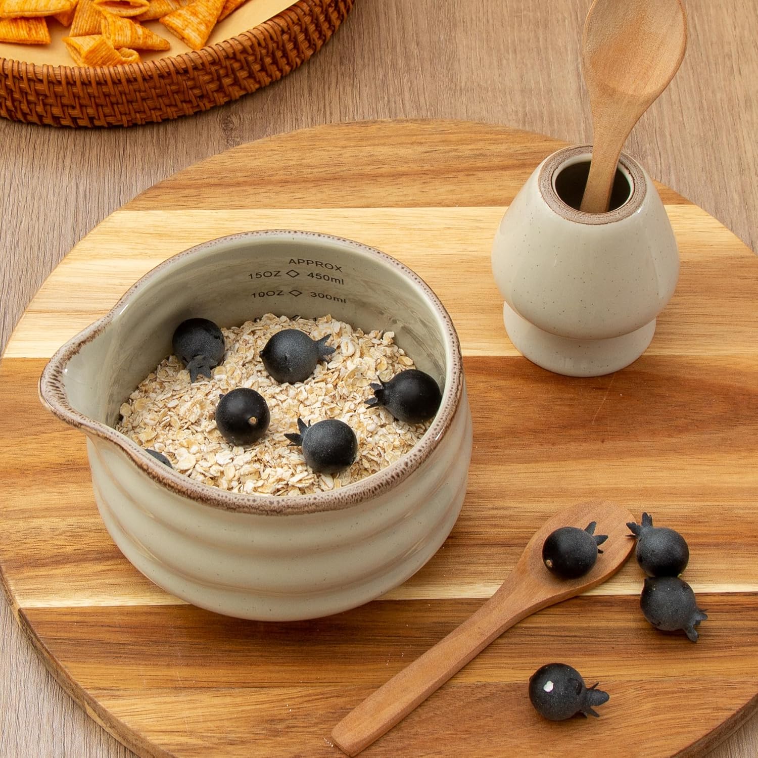 - Retro Grey Ceramic Bowl with spout: This ceramic matcha bowl features adorable reactive grey glaze, adding elegance to tea rituals.The 16.5OZ porcelain bowl is large enough for whisking matcha, preparing matcha latte, or even serving salad, fruits, soup, tea or cereals.