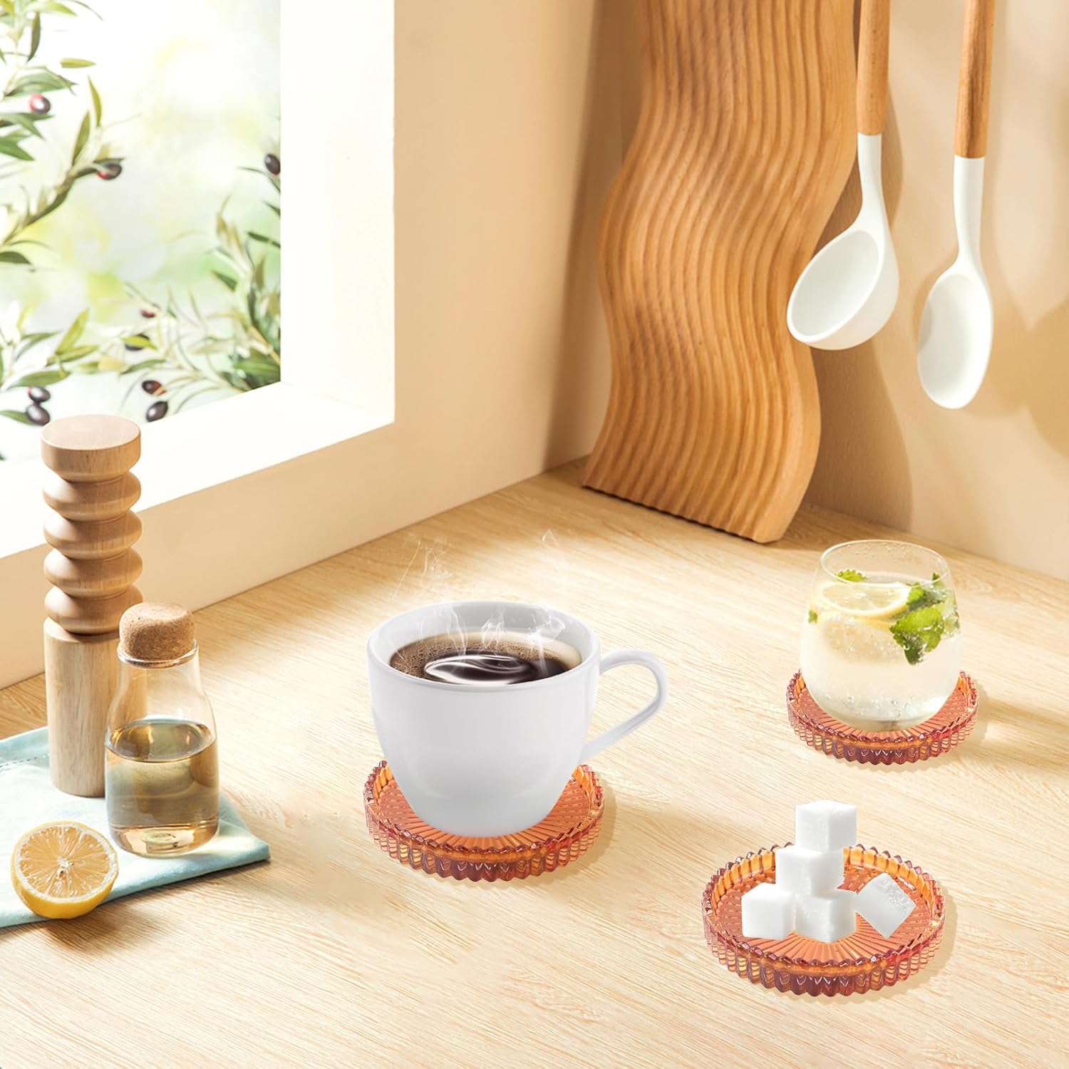 Glass Coaster 6 Pack Round Cup Coasters for Drinks,Crystal Coffee Coaster,Stylish Drink Coasters for Kitchen Bar Dining Room Living Room Office Decor and Jewelry Storage,Amber