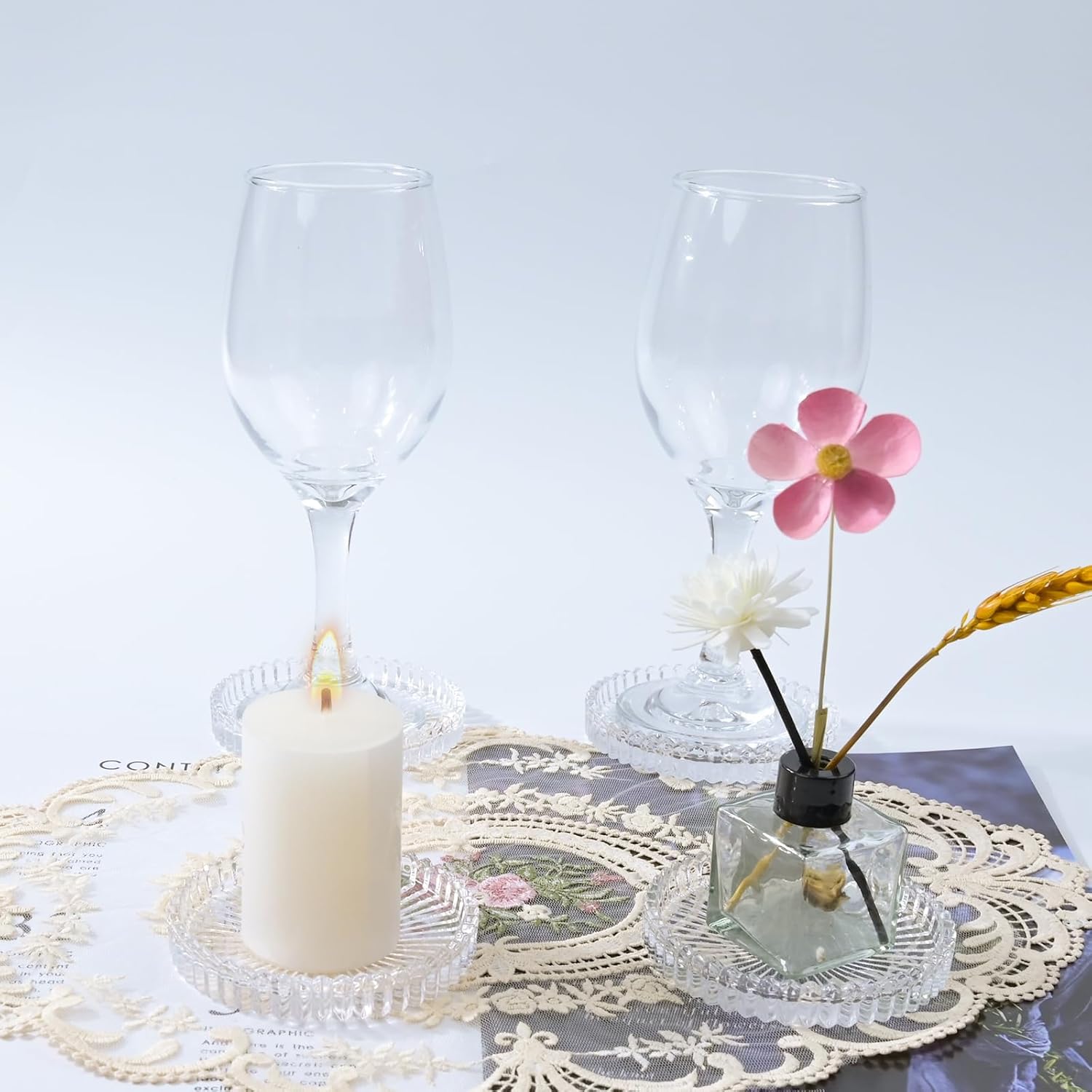 - Perfect Size- Set of 6 crystal drink coasters. The outer diameter of this coaster is 3.9 inches; the inner diameter of this coaster is 3.7 inches; the height of this coaster is 0.8 inches; suitable for most of cups and mugs, making them the perfect size for holding coffee cups, sports bottles, craft cocktails and tumblers. ( But pls measure the bottom size of the cup before order to avoid coaster size too small to fit.)