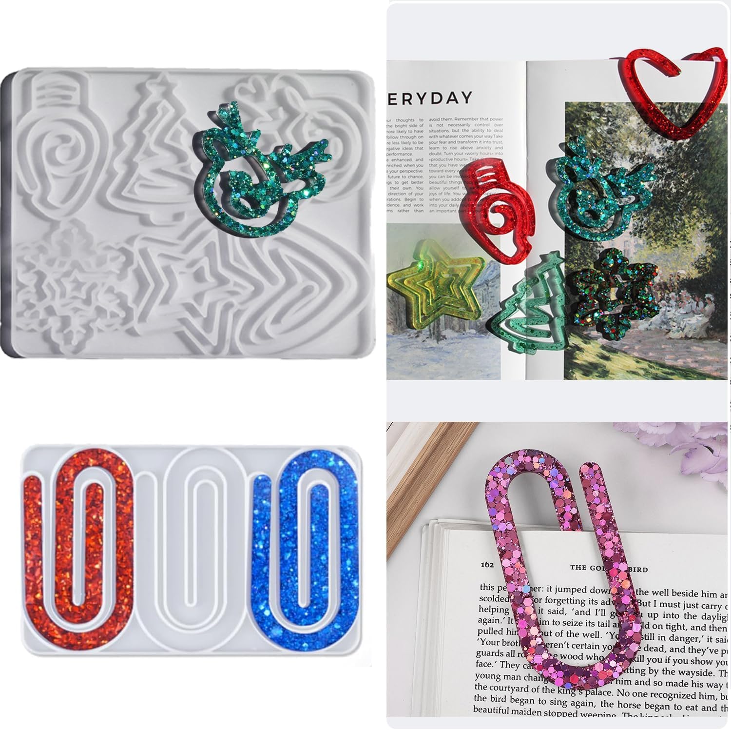 9-in-1 Christmas Resin Bookmark Mold Set - Reindeer/Snowflake/Tree/Heart/Star Silicone Molds for Epoxy Paperclips & Standard Bookmarks, Holiday Gift Crafts,DIY Supplies, Book Lovers Gift