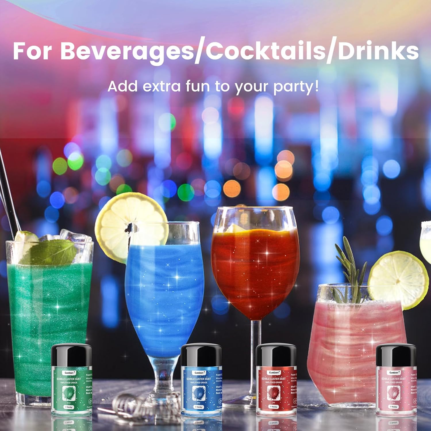- 【Wide Application】Our edible luster dust powder is widely used in drinks, cocktails, cakes, cupcakes, candies, chocolates, fondants, adding vivid colors for DIY decorations and fun!